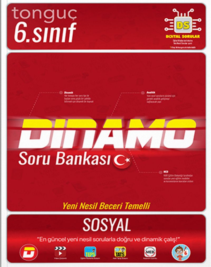 Kitapta karşılaşacakların, alıştığın testlerden biraz farklı. Her testin ilk sayfası dikey, ikinci sayfası ise yatay olarak tasarlandı. Üstelik bütün testler yeni nesil sorulardan hazırlandı. Ünite sonlarına eklenen YAZILIYA HAZIRLANALIM etkinlik ve boşluk doldurma kısımlarıyla soru çeşitliliğini artırarak kitap sana tekrarını daha sağlam yapma imkânı sunuyor. Dinamo’da seviye seviye karşılaşabileceğin her tarz soruyu göreceksin. Böylece adım adım başarıya yürüyeceksin.