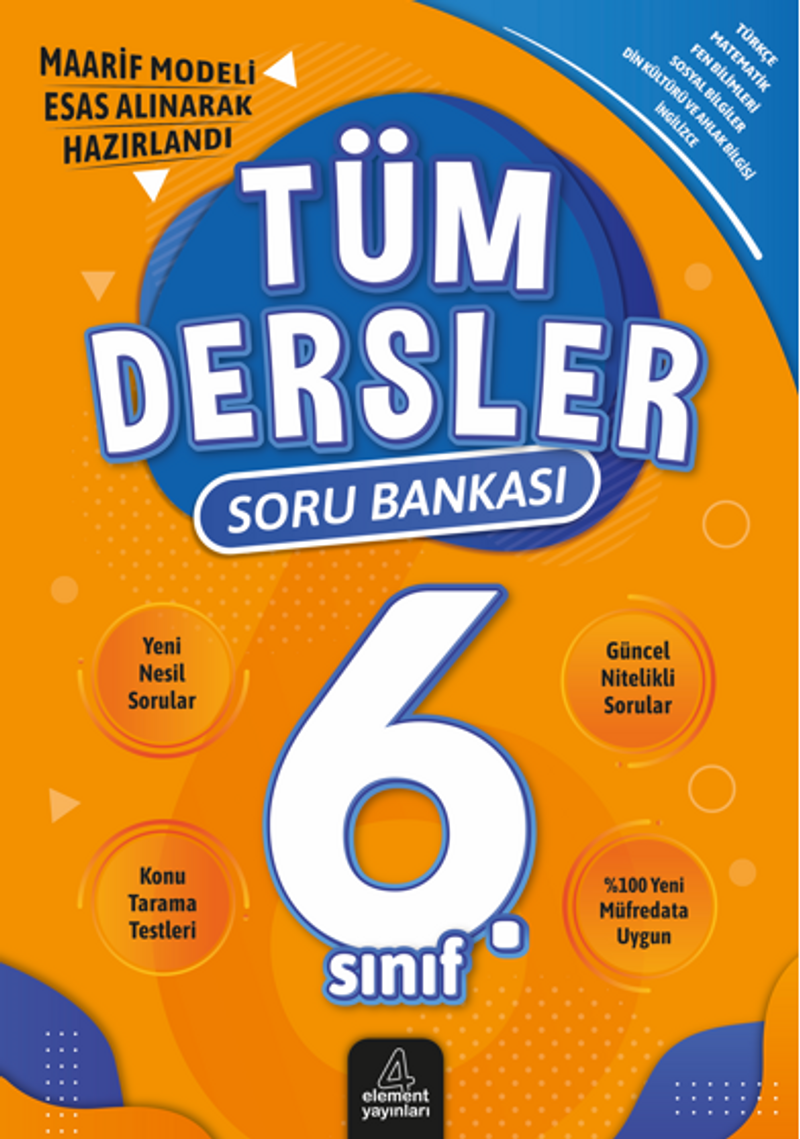 Sevgili Öğrenciler, Değerli Veliler ve Kıymetli Öğretmenler, Geleceğe hazırlanan genç dimağlar için, "Maarif Modeli" esas alınarak titizlikle hazırlanan 6. Sınıf Tüm Dersler Soru Bankası kitabımızla karşınızdayız! Bu kitap, Millî Eğitim Bakanlığının çağdaş eğitim yaklaşımı doğrultusunda, öğrencilerimizin bilgiye sadece ulaşmasını değil, onu analiz etmesini, yorumlamasını ve hayata uyarlamasını sağlamak amacıyla oluşturuldu. Ezberci yaklaşımlardan uzak, analitik düşünme ve eleştirel bakış açısı kazandıran bu eşsiz kaynakla tanışın. Kitabımızın içeriğinde yer alan her soru, öğrencilerimizin merak duygusunu harekete geçirecek, bilgiyi farklı disiplinlerle ilişkilendirmesini sağlayacak. Türkçe: Okuma ve anlama becerilerini derinleştiren, dilin inceliklerini kavratan özgün metinler ve sorular. Matematik: Kavramsal öğrenmeye odaklanan, mantık ve problem çözme becerilerini geliştiren özgün problemler. Fen Bilimleri: Bilimsel düşünce yapısını oluşturan, gözlem ve deneye dayalı sorularla dünyayı sorgulamaya teşvik eder. Sosyal Bilgiler: Tarihe, coğrafyaya ve topluma bütüncül bir bakış açısı kazandıran, eleştirel düşünceyi destekleyen sorular. Bu kitap, öğrencilerimizin ders başarılarını artırırken, aynı zamanda onları sadece bugünün değil, geleceğin yetkin bireyleri olarak yetiştirmeyi amaçlamaktadır.