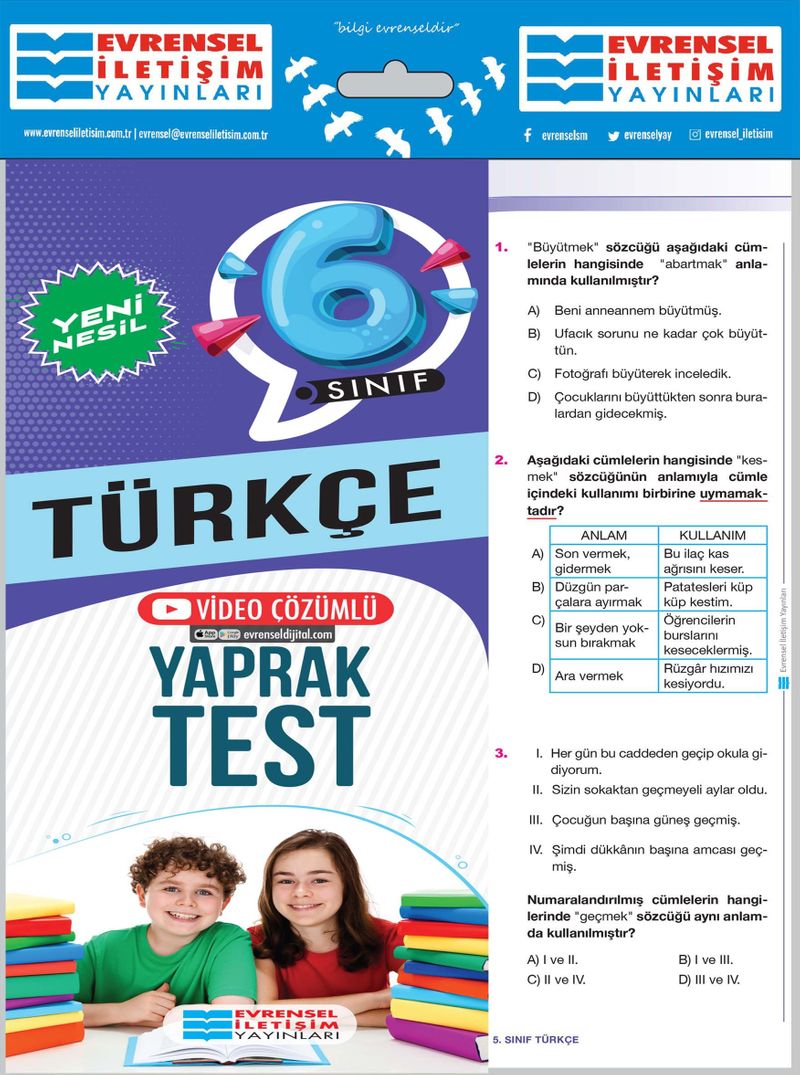 MEB’in 6. Sınıf kazanımlarının tümüne yönelik yeni nesil sorularla hazırlanmıştır.
