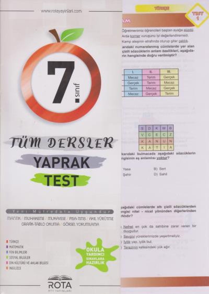 7. Sınıf Tüm Dersler Yaprak Test