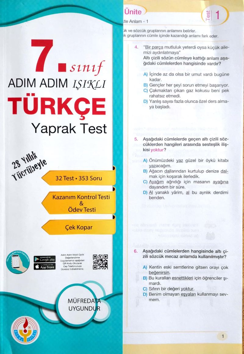 7. Sınıf Türkçe Adım Adım Işıklı Yaprak Test