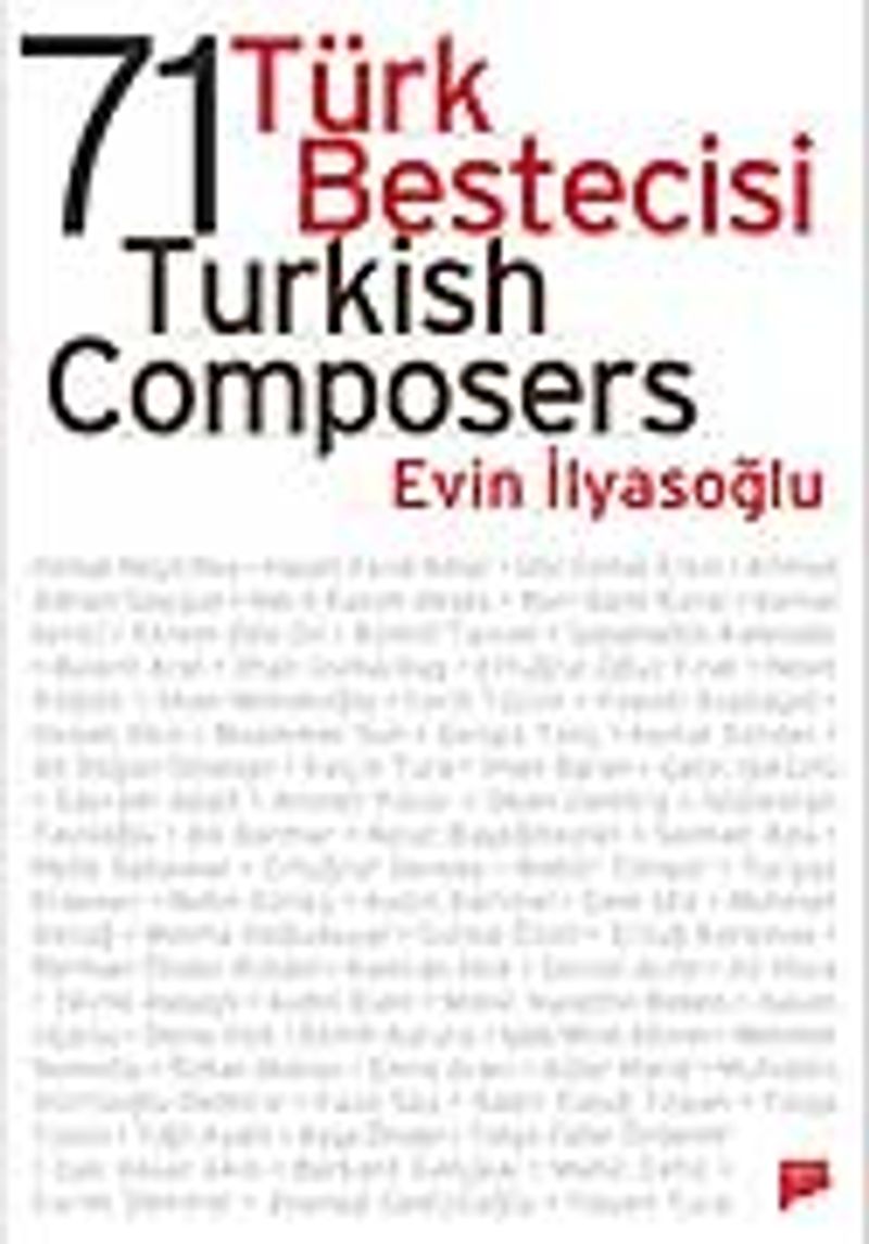 Evin İlyasoğlu, bu kitabıyla çoksesli çağdaş Türk bestecilerinin öncü kuşaklarından en genç kuşaklarına dek uzanıyor. 71 Türk Bestecisi / 71 Turkish Composers, Türkçe ve İngilizce olarak hazırlanan metinlerle bestecilerin özgeçmişlerini, yapıt listelerini ve diskografilerini içeriyor. Bu kitap, araştırmacılar, yorumcular, konser salonu yöneticileri ve müzik öğrencilerine bir el kitabı olduğu kadar, müzikle doğrudan ilgilenmeyenlere de çağdaş Türkiye'ye ait bir belge niteliğinde.