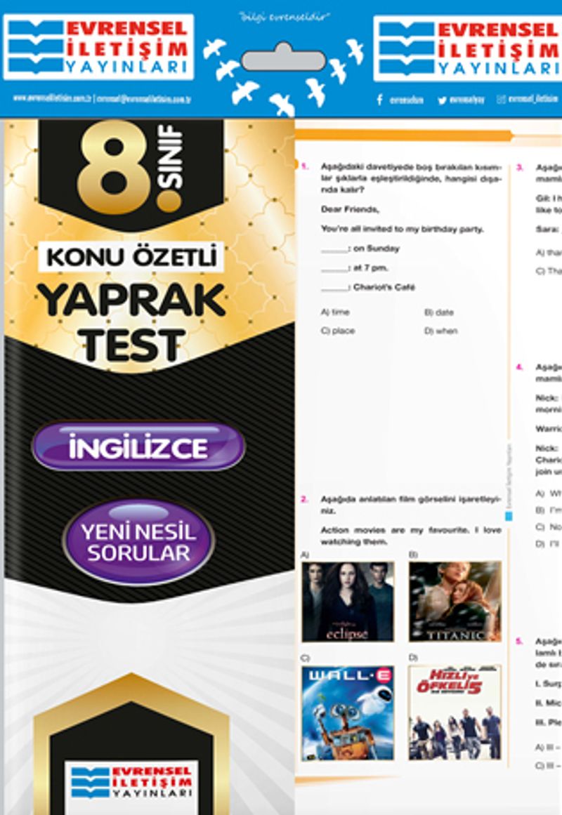 8. Sınıf İngilizce Konu Özetli Yaprak Test
