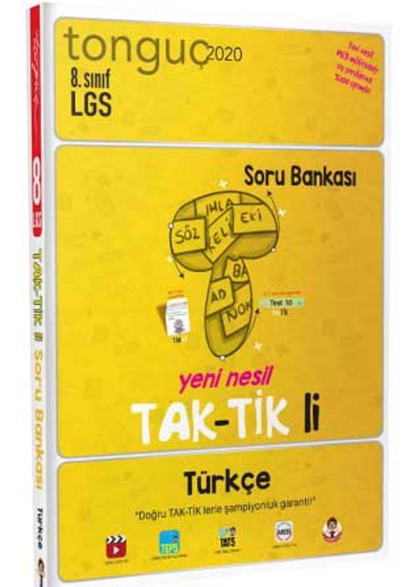 8. Sınıf Türkçe TakTikli Soru Bankası sana ihtiyacın olacak tüm taktikleri sunuyor! Eğer sen de bu sene Türkçe dersinin parlayan öğrencileri arasında yer almak istiyorsan bu kitap tam sana göre… Kitabı eline aldığında alıştığın soru bankalarından oldukça farklı olduğunu göreceksin. Kitap, yenilenen 2019-2020 güncel müfredatı ile tamamen uyumlu testler içeriyor. Fakat en güzel yanı, öğrenmeni kalıcı hale getirmek için özel olarak hazırladığımız TAKbil ve posterler! Yüzlerce faydalı bilgi içeren çıkartmalar yani TAKbillerini, posterler üzerinde en doğru bölümlere yerleştirerek öğrenme haritanı kendin oluşturabileceksin. Tamamladığın testleri ise tesTİKleyerek Türkçe dersindeki gelişimini izleyebileceksin.