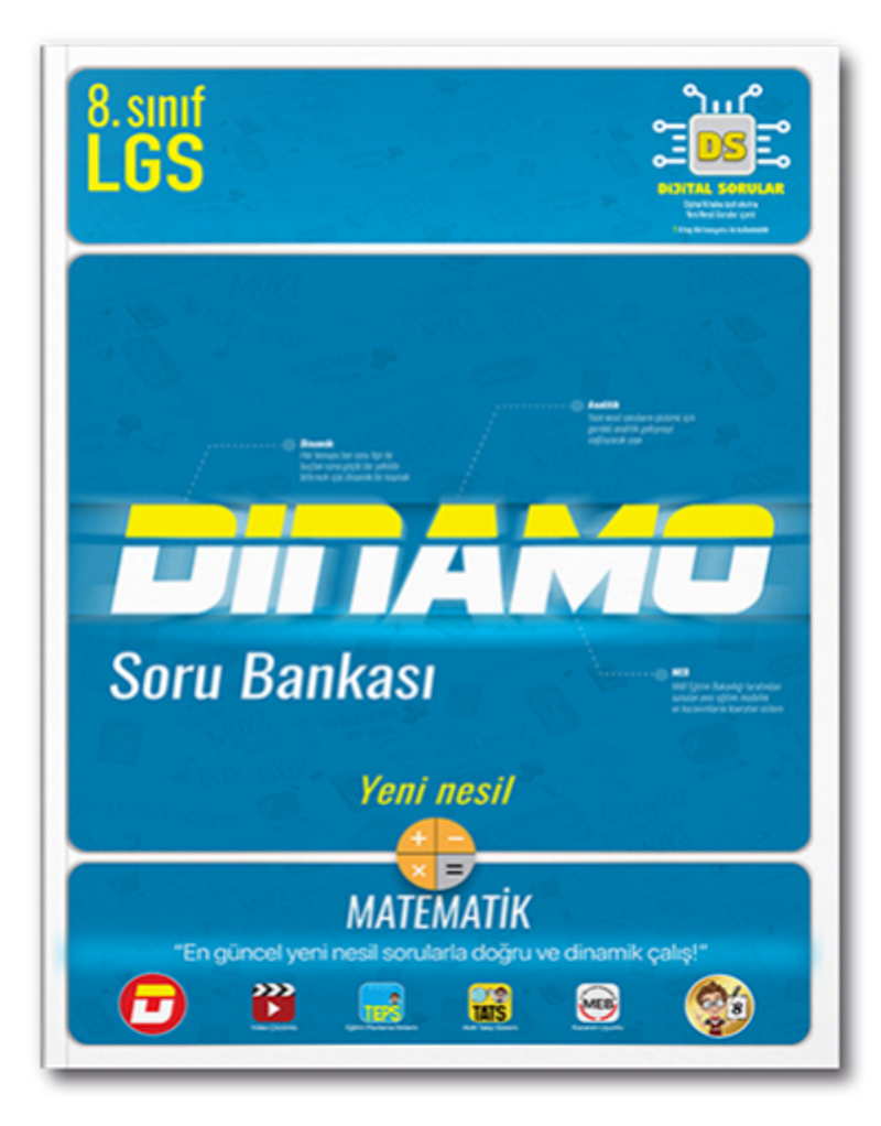 Kitapta karşılaşacakların, alıştığın testlerden biraz farklı. Her testin ilk sayfası dikey, ikinci sayfası ise yatay olarak tasarlandı. Üstelik bütün testler yeni nesil sorulardan hazırlandı. Dinamo’da seviye seviye karşılaşabileceğin her tarz soruyu göreceksin. Böylece adım adım başarıya yürüyeceksin.