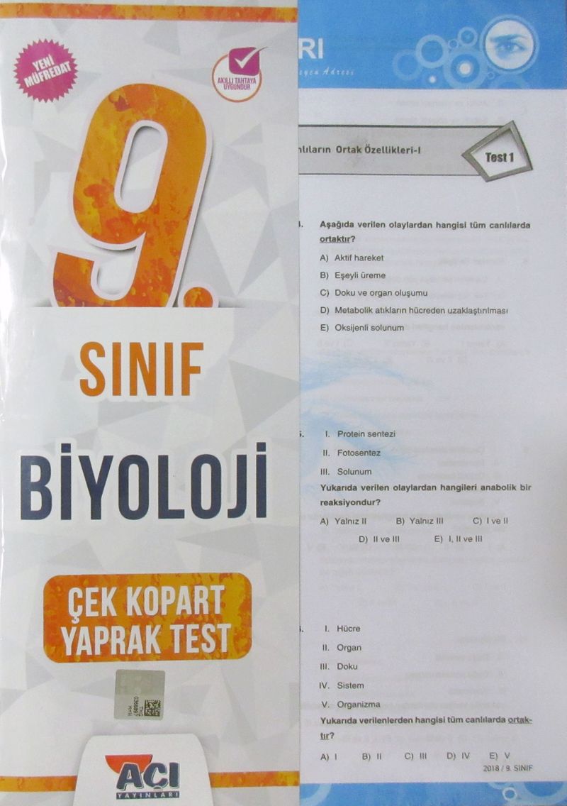 9. Sınıf Biyoloji Çek Kopart Yaprak Test