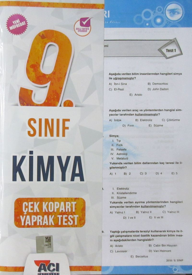 9. Sınıf Kimya Çek Kopart Yaprak Test