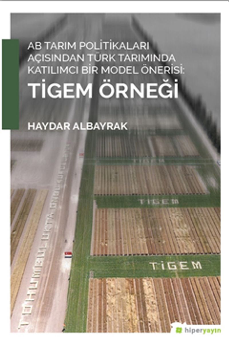 AB Tarım Politikaları Açısından Türk Tarımında Katılımcı Bir Model Önerisi: TİGEM Örneği, İnönü Üniversitesi İİBF Siyaset Bilimi ve Kamu Yönetimi Ana Bilim Dalı’nda hazırlanan Doktora Tezinden doğmuş bir kitaptır. Cumhuriyet dönemi tarım politikaları ile AB tarım politikalarının karşılaştırmalı olarak ele alındığı çalışmada, Türk tarımına yönelik katılımcı bir model önerisinde bulunulmuştur. Bu önerimizde bulunurken “teşhis tedavinin yarısıdır” sözünü kendimize ilke edinerek öncelik olarak sorunun doğru tespitine çalışılmıştır. Sorunlar bütün yönleri ile ortaya konduktan sonra uygulanabilir çözüm önerileri sunulmaya çalışılmıştır.