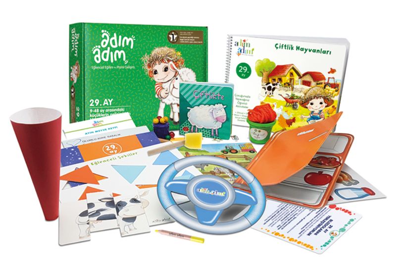 Adım Adım, 9. aydan 48. aya kadar çocukların eğlenceli eğitimi, planlı gelişimi içindir. Uzman pedagog ve psikologlarca hazırlanmış aylık setler halindedir. Adım Adım’ın her ayki seti, çocuğunuzun o ayki dört temel (duygusal/sosyal, dil, motor ve zihinsel) gelişimini destekleyici etkinlikler için gerekli bilgi ve donanımı içerir. Adım Adım, çocuğunuzun gelişiminde, akranlarına kıyasla fark yaratır, gelecekteki başarılarına zemin oluşturur.