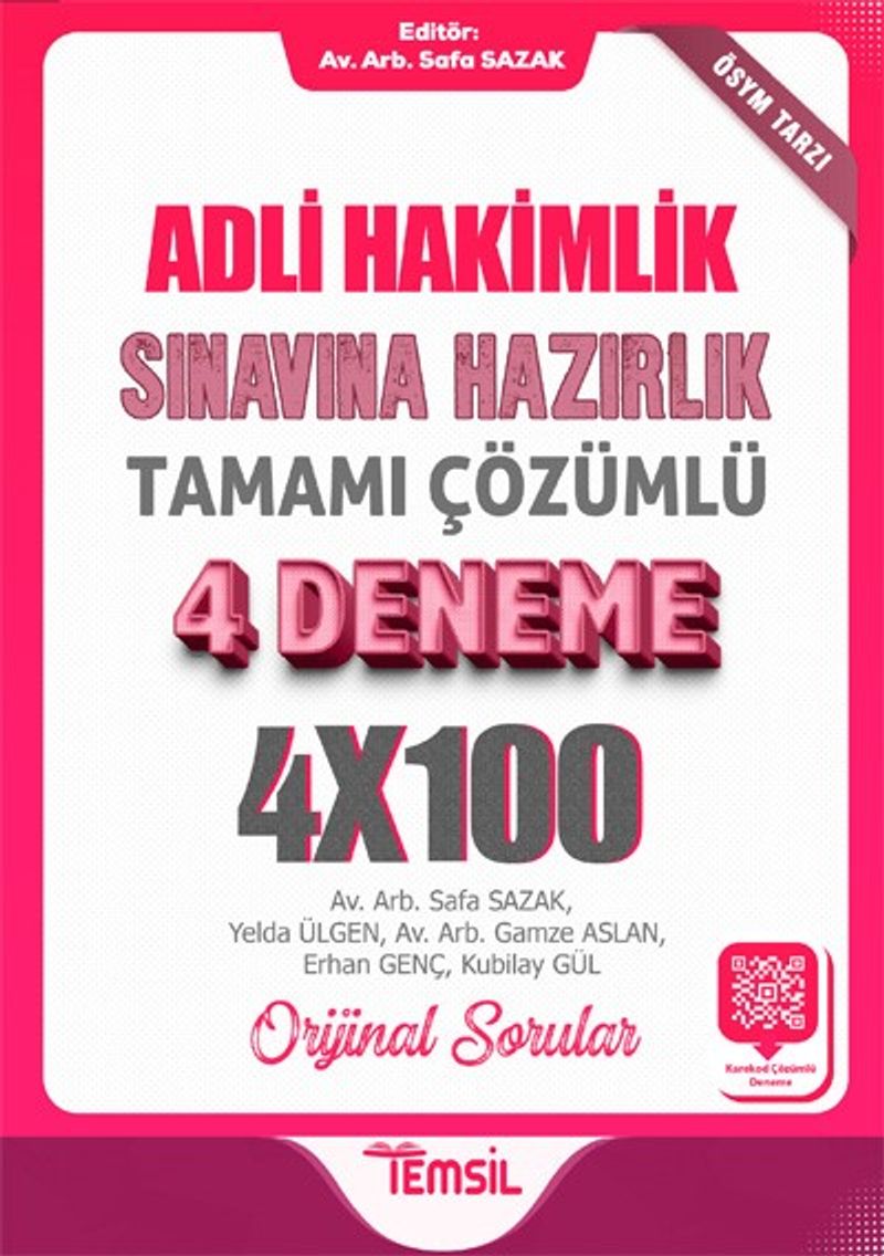 Adli Hakimlik Sınavına Hazırlık Tamamı Karekod Çözümlü 4 Deneme
