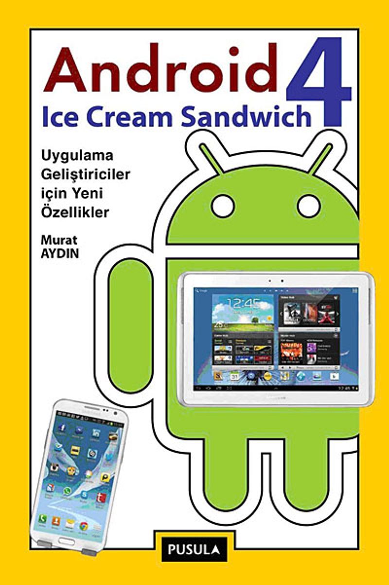 Dünyada en çok kullanılan mobil işletim sistemi olan Android, her gün piyasaya sunulan yeni ürülere hitap edebilmek ve kullanıcılarının yeni ihtiyaçlarını karşılamak üzere sürekli olarak geliştiriliyor. Murat Aydın’ın bu kitabı, Android’in 4. sürümünün getirdiği yeni olanakları, Android ile çalışmakta olan geliştiricilere detayları ve örnekleriyle anlatmayı hedefliyor… Packt Publishing tarafından İngiltere’de, Pusula Yayıncılık tarafından Türkiye’de aynı anda basılan kitap, Android uygulama geliştiricilerinin bir seviye üste çıkmasını sağlayacak…