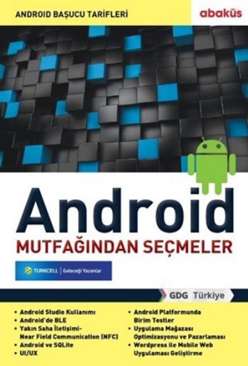 Yazılım Gurmelerine Android Başucu Tarifleri Bu kitabı özel kılan bir şey var: Bu kitap kolektif bir kitap. Bilişim sektöründe çalışan harıl harıl çalışan- bir grup insan bir araya gelerek bildiklerini başka insanlara aktarmak için yola koyuldular. Zaten sınırlı olan zamanlarının epeyce bir kısmını bu kitabı hazırlamak için feda ederek, Android hakkında, ele aldığı konularla benzerlerinden ayrılan bu kitabı ortaya çıkardılar. GDG Türkiye üyeleri tarafından kaleme alınan bu kitapta yazarlar, Android'in çok fazla değinilmeyen konularını ele alıyorlar. Kitap Android'de yazılım geliştirenlerin yeni bir şeyler öğrenebileceği bir kitap olarak tasarlandı. Farklı yazarların uzmanlık alanları hakkındaki makalelerinin bir araya getirilmesiyle bilişim teknolojileri alanında nadir bir çalışmaya imza atan GDG Türkiye üyeleri, kitaba sonraki baskılarda güncel ve daha ilginç konuları eklemeyi düşünüyorlar. Android Studio Kullanımı BLE Yakın Saha İletişimi-Near Field Communication (NFC) Android ve Sqlite Android’de Batarya Optimizasyonu Android’de Performans Android Platformunda Birim Testler UI/UX Uygulama Mağazası Optimizasyonu ve Pazarlaması Wordpress ile Mobile Web Uygulaması Geliştirme