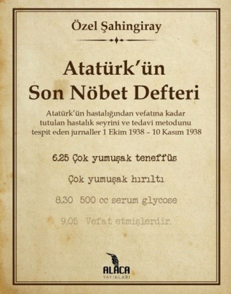 Cumhurbaşkanı Celâl Bayar’ın, arşivinde bulunan bu defter: 1 Ekim 1938 Cumartesi günü başlayıp; 10 Kasım 1938 Perşembe günü saat 9’u 5 geçe sona ermekte ve Atatürk’ün,