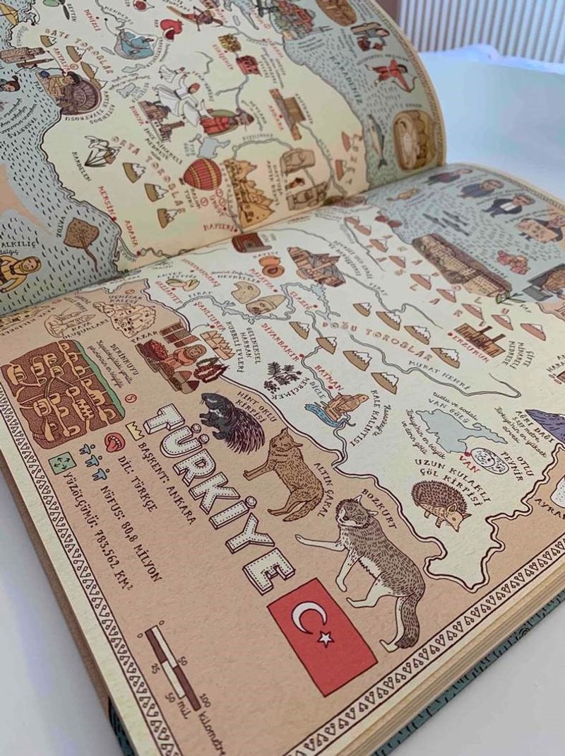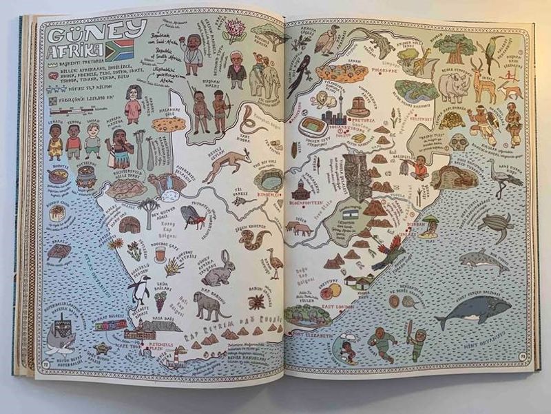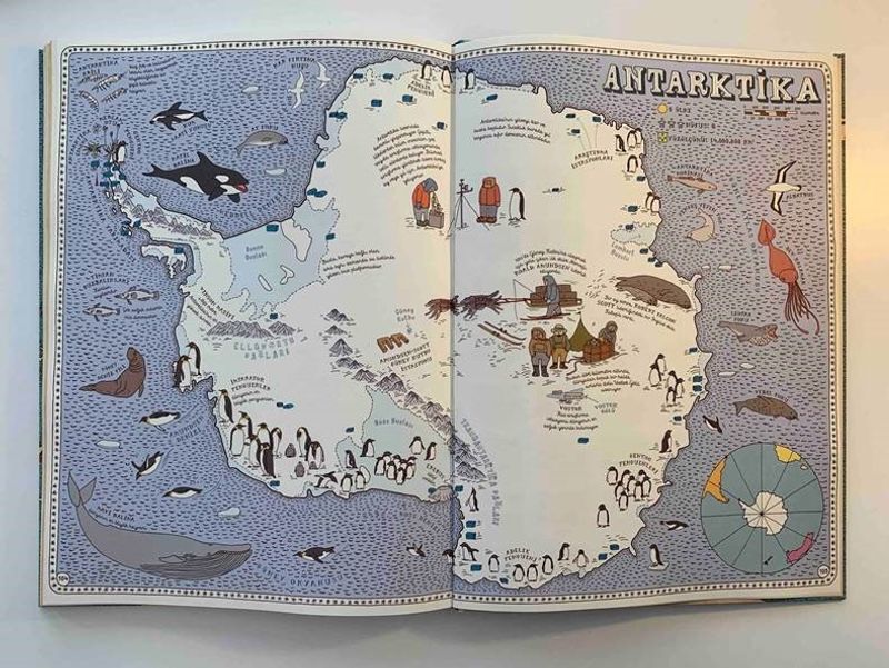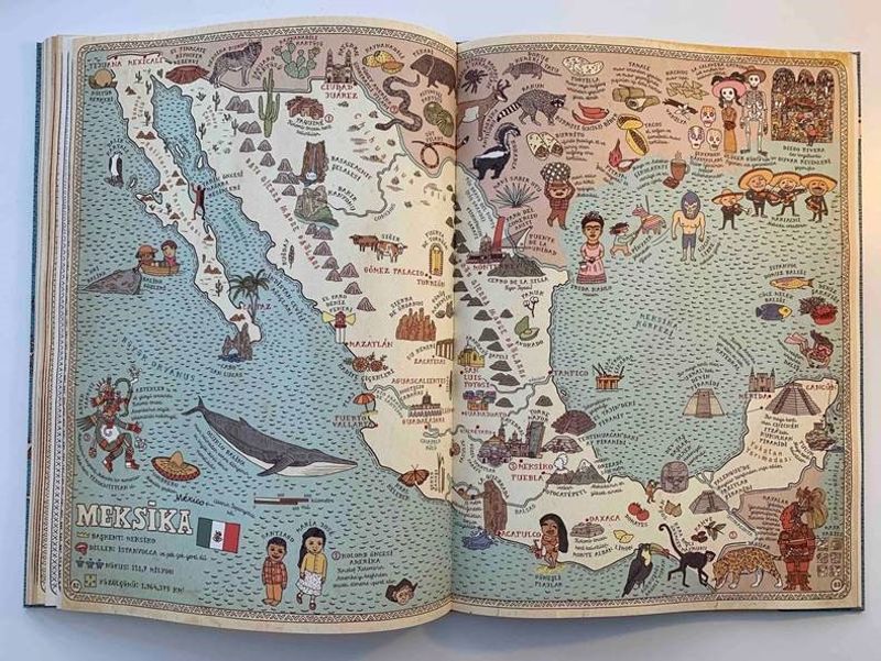ATLAS - Kıtalar, Denizler ve Kültürler Arası Yolculuk Rehberi, sadece coğrafi bilgileri değil, ülkelerin karakteristik yönlerini de sunan büyük boy haritaları, ödüllü tasarımı ve göz alıcı çizimleriyle sizi koltuğunuzdan kıpırdamadan dünya turuna çıkarıyor.