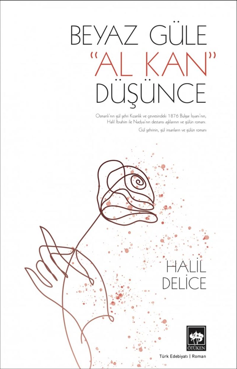 Halil İbrahim, kalbi vatan aşkıyla yanıp tutuşan, bir yanda milletini içerisinde bulunduğu zor durumdan kurtarmak isteyen, öte yandan Bulgar güzeli Nadya ile evlenme hayali kuran bir gençtir. Halil İbrahim’in hayallerini gerçekleştirme arzusuyla bıkıp usanmadan çalıştığı bir sırada patlak veren 1876 Bulgar İsyanı ise her şeyi hallaç pamuğu gibi atan, peşinden büyük bir millî mücadeleyi getiren özel bir hadise olarak beliriverir.Halil İbrahim’in Rumeli’nin güller şehri Kızanlık’ta başlayıp İstanbul’da Sultan II. Abdülhamit’e yakın koruma olacağı güne kadar başından geçenleri konu alan Beyaz Güle Al Kan Düşünce, Balkanlar’da kalan Türk mirasına yakılan bir ağıt ve bu toprakların nasıl vatan kılındığına dair destansı bir anlatı…Halil Delice’nin Balkan coğrafyasını en ince ayrıntılarına dek işlediği bu romanı, anlatım gücü, yerel ağızları yansıtmadaki başarısı ve güçlü hikâyesiyle yazarın en önemli eserlerinden biri olarak Ötüken Neşriyat aracılığıyla yeniden okurlarla buluşuyor.