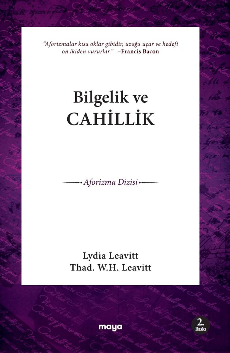 Yaşadıkları süre boyunca çok fazla eser vermeyen seyyah ve yazar karı koca Leavitt’lerin Türkçedeki ilk kitapları Bilgelik ve Cahillik, genelde insan ruhunun, özelde ise kadın ve erkek ruhunun en gizli köşelerine dokunan aforizmalardan oluşmaktadır.