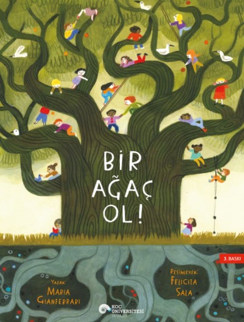 Bir Ağaç Ol! isimli bu şiirsel anlatımında yazar Maria Gianferrari, doğanın en büyük yaratımlarından biri olan ağaçlarla bizlerin benzerliklerini gözler önüne seriyor. Köklerinin sarıldığı mantarlar sayesinde birbirleriyle nasıl konuştuklarını, besinlerini nasıl paylaştıklarını, suyu depolayıp kaynaklarını nasıl bölüştüklerini ve tehlikelere karşı birbirlerini nasıl uyardıklarını anlatıyor. Daha da önemlisi ise, ağaçların, daha iyi insanlar olmamız için bizlere nasıl ilham verebileceğini hatırlatıyor. “Ormandaki ağaçlar gibi olup birbirimizi korursak, tüm kaynaklarımızı paylaşırsak dünya daha da güzel bir yer olur.” Felicita Sala’nın muhteşem çizimlerinin eşlik ettiği Bir Ağaç Ol! kitabında ayrıca, ağaçları kurtarmaya yardımcı olacak bilgilerin, bir ağacın anatomisiyle ilgili ayrıntıların, konuyla ilgili kaynak kitapların ve internet sitelerinin listelendiği ek sayfalar da yer alıyor.