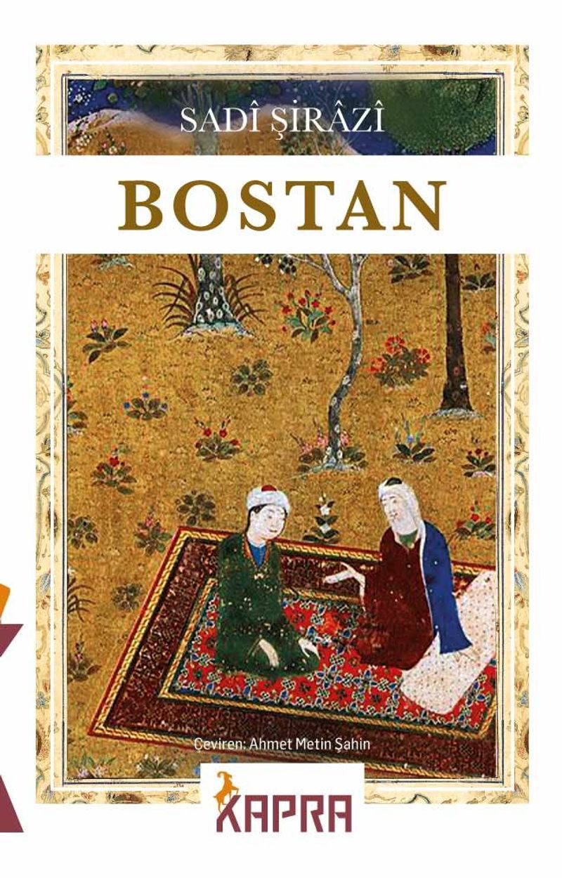 Sadî Şirâzî’nin eserleri arasında Bostan ve Gülistan en meş¬hurlarıdır. Sadî, Bostan’ı Gülistan’dan bir sene önce, h. 655 (m. 1257) yılında ve iki bayram arasında yazmıştır. Ah¬met Metin Şahin, merhum dayısı Şefik Can’ın arzusuy¬la bu büyük İslam şairinin her iki eserini de vezinleriyle Türkçeye kazandırmıştır.