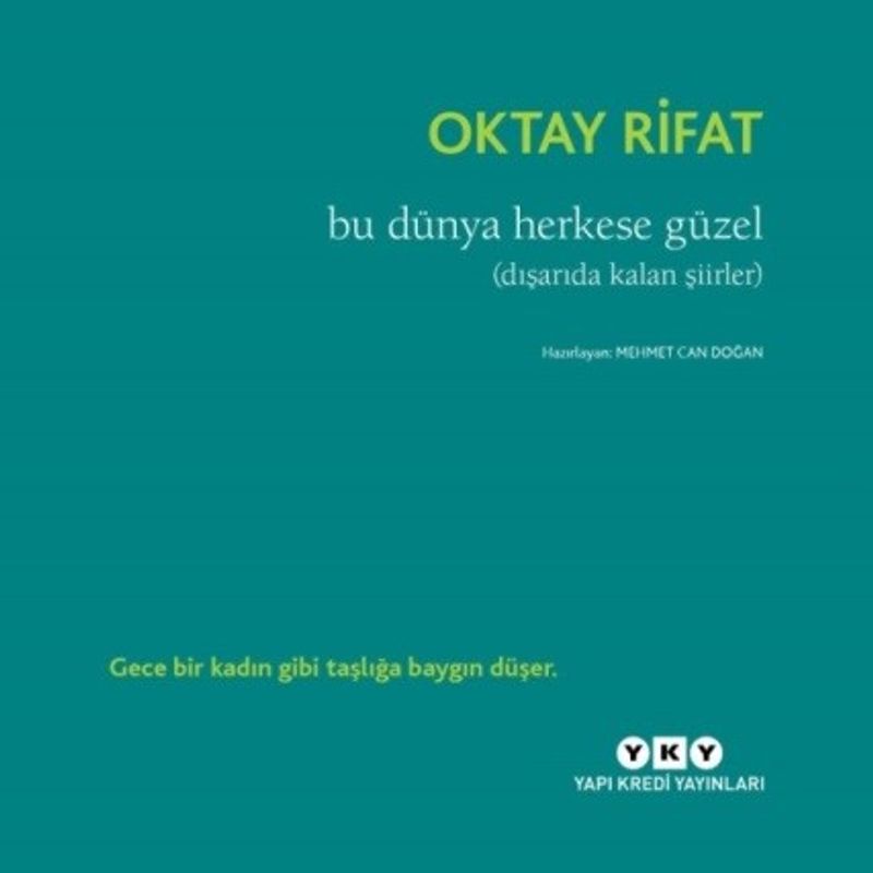 Daha önce Edip Cansever ve Turgut Uyar’ın kitaplarına girmemiş şiirlerini derleyip hazırlayan Mehmet Can Doğan bu kez Oktay Rifat’ın dergilerdeki izini sürdü. 1933-86 yılları arasında çeşitli yayınlarda yer almış ancak şairin hiçbir kitabına almadığı 75 şiiri günümüz okuruyla ilk kez buluşturan bir kitap Bu Dünya Herkese Güzel. Şairin vasiyetine uyularak, Toplu Şiirleri’ne hiçbir zaman eklenmemesi kaydıyla yapılmış bir yayın bu aynı zamanda.