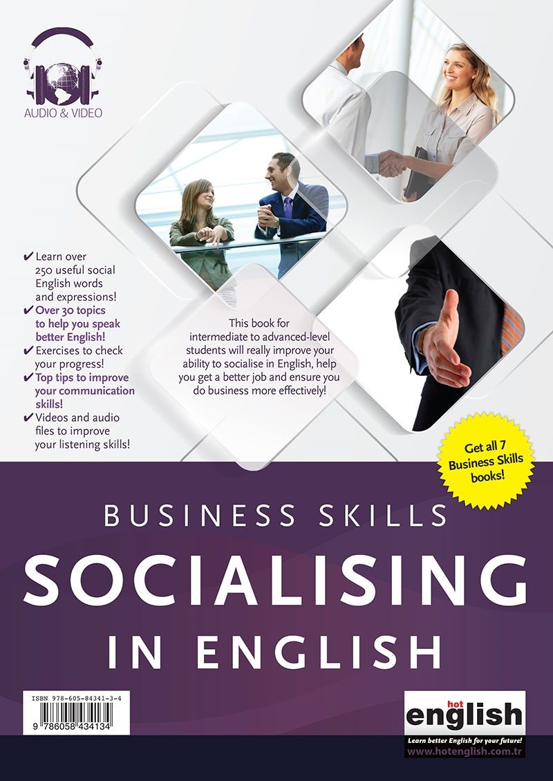Bu kaynak, iş hayatında girebileceğiniz sosyal ortamlarla ilgili kelimeleri ve kullanışlı ifade ve kalıpları öğretmektedir. Konuşma ve diyalogları takip etme, konuşmalara katılma ve etkileyici bir izlenim bırakma yeteneği başta olmak sizi ön plana çıkaracak ve özgüven kazandıracak beceriler kazanacaksınız.