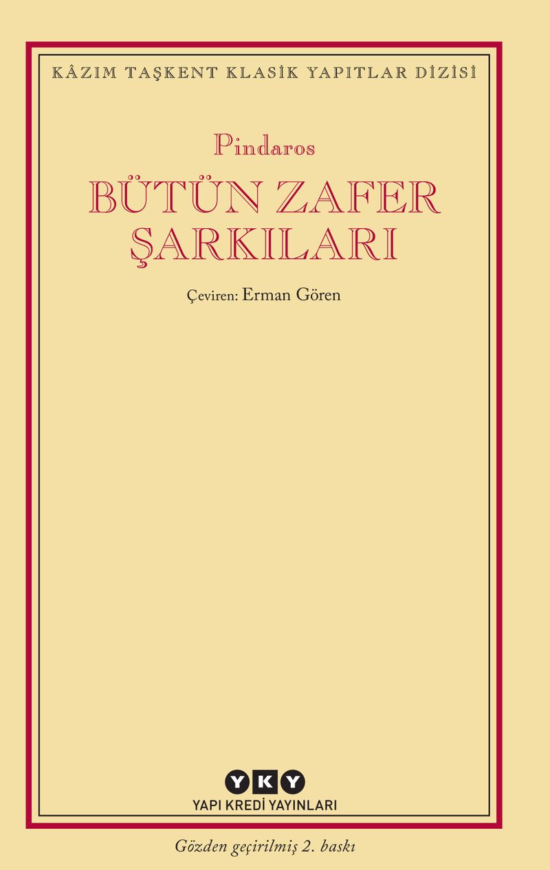 Pindaros (MÖ 518-438), lirik şiirler arasında yapıtları en iyi şekilde korunarak günümüze kadar gelen Yunan şairdir. Bütün Zafer Şarkıları ise bu türün (epinikion) ulaşabildiğimiz en geniş külliyatını oluşturur. Thebailı soylu bir aileye mensup olan Pindaros, yaşadığı dönemde en zorlu rakipleri olan Keoslu Simeonides ve onun yeğeni Bakkhylides ile girdiği zorlu şiirsel rekabetle nam salmıştır. Şiirlerinde yoğun şekilde kullandığı dramatik öğelerin parlaklığı büyük hayranlık kazanmasına ve Horatius, Catullus gibi Latin şiirinin öncü şairleri tarafından model alınmasına yol açmıştır. Zafer şarkılarında başvurulan mitler takip edilebilecek bir niteliğe sahip olsa da kullanılan yoğun metaforik dil, şiirsel biçimi zorlayan üslup ve özdeyişlerin derinliği şarkılara nüfuz edilmesi için okuyucunun da çabasını gerektirir.