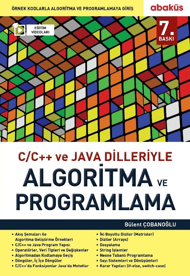 Algoritma, bir problemi çözüm basamaklarına ayırma işlemidir. Bu kitapta bir problemin, 3 farklı programlama dilinde (C, C++, Java) çözümleri verilmiştir. Elinizdeki kitap, algoritma ve programlama mantığını kavramak, C/C++ ve Java dillerinde programlamayı sıfırdan öğrenmek veya bir dilde programlama bilip de başka bir dilde de bu becerisini geliştirmek isteyenler için hazırlanmış bir başucu kitabıdır. Unutmayın ki programlama beceriniz kod yazdıkça ve proje geliştirdikçe artacaktır. 7’den 77’ye herkes kod yazabilir, korkmayın ve başlayın!