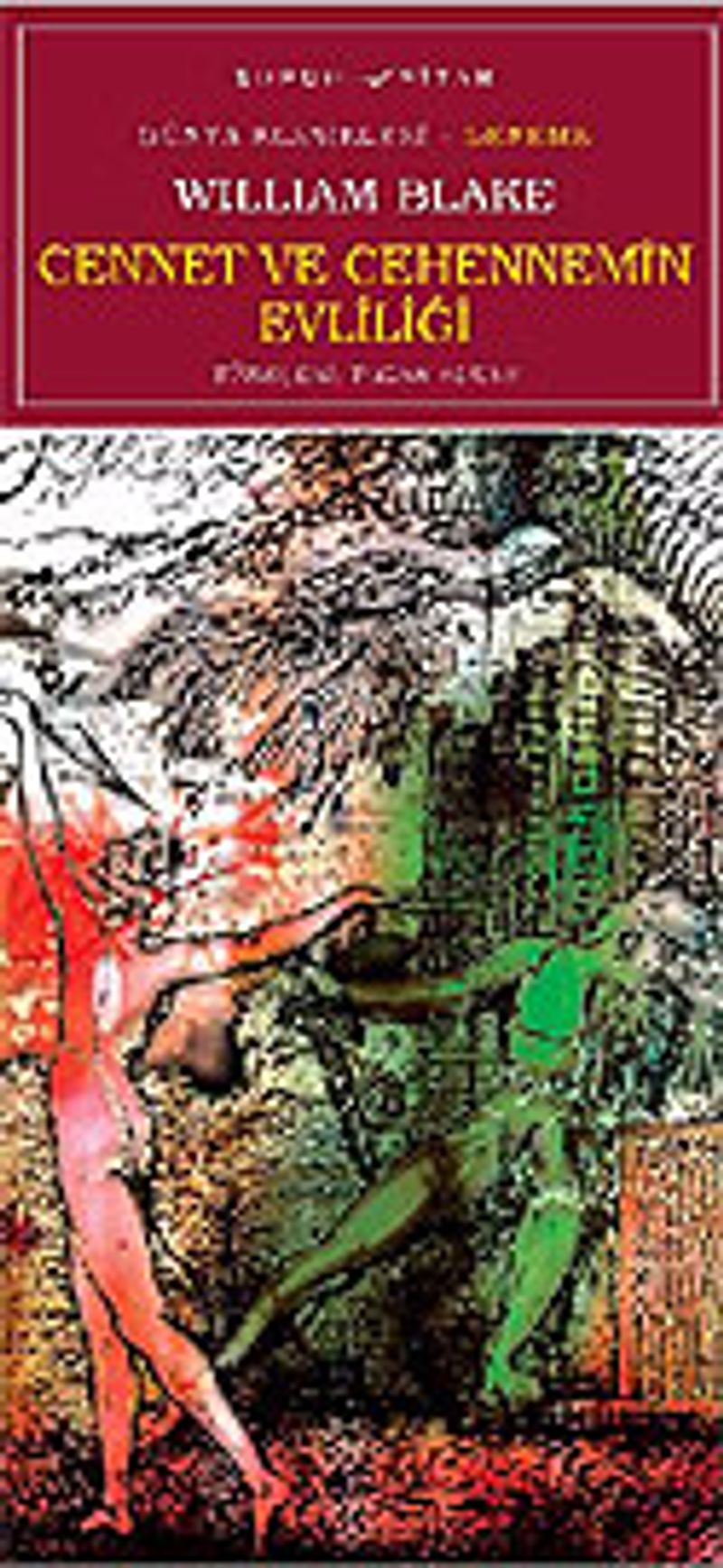 Cennet ve Cehennemin Evliliği, William Blake’in, büyük İngiliz mistiğin kehanet kitaplarının en önemlilerindendir. Bu tuhaf yapıtı zamanında pek çok okurun yadırgadığına inanıyorum. Günümüzde bile anlayan ve seven çok az okur vardır.