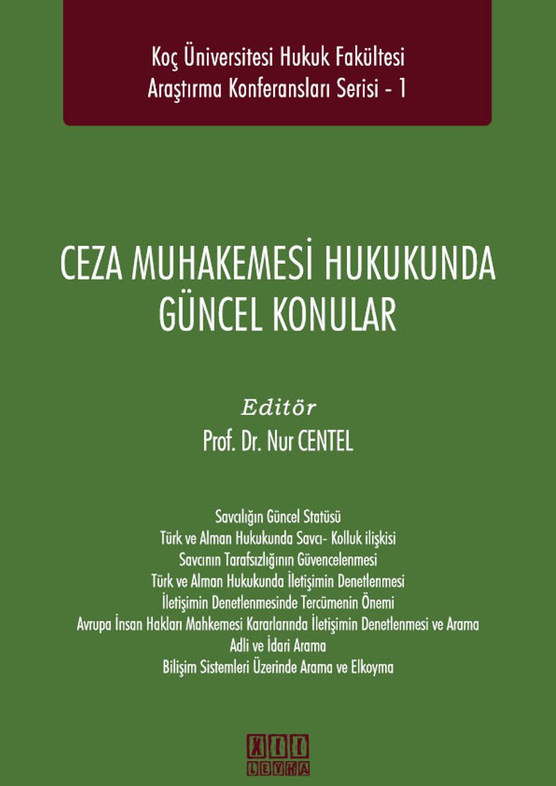 Ceza Muhakemesi Hukukunda Güncel Konular başlıklı bu kitap, Hukuk Araştırma Konferansları başlıklı yeni serimizin ilk yayınıdır. Kitabın ana teması, Ceza Muhakemesi Hukuku alanında Türkiye ve Almanya'daki değişimin analizi ile bu alanda İnsan Hakları Avrupa Mahkemesi içtihatlarının etkisine odaklanmaktadır. Söz konusu güncel gelişmeler yayının içeriğini oluşturan makalelerde, özellikle savcı-kolluk ilişkisi; iletişimin denetlenmesi; idari ve adli arama; bilgisayarlarda, bilgisayar programlarında ve kütüklerinde arama, el koyma ve kopyalama gibi tedbirler, alanında yetkin öğretim üyeleri ve uygulamacılar tarafından hukuka uygunluk standartları ve uygulamadaki sorunlar temelinde kapsamlı biçimde tartışılmaktadır. Tartışma ve yorumların, etkili ve katılımcı biçimde paylaşıldığı bu yayına öncülük eden etkinliğimiz 16 Ekim 2014 tarihinde kitap başlığını taşıyan bir konferans biçiminde düzenlenmişti. Mevcut yayın, bu konferansta sunulmuş tebliğlerin makaleye dönüşmüş çıktılarını derlemektedir. Yayının içeriğinin Türkiye ve karşılaştırmalı hukuktaki artan önemini dikkate alarak planladığımız konferansımızı düzenleyen ve yayına dönüşmesini sağlayan öğretim üyemiz Prof. Dr. Nur Centel'e takdir ve teşekkür borçluyuz. Kendisinin alandaki öncülüğü ve akademik kıdemi, etkinlik ve yayınımızın yüksek araştırma kalitesini belirlemiştir. Hem etkinlik hem de yayın aşamasında oturum başkanı ya da davetli konuşmacı sıfatıyla yer alan değerli öğretim üyesi ve uygulamacı meslektaşlarımız Prof. Dr. Frank Saliger'e (Tübingen Üniversitesi Hukuk Fakültesi), Prof. Dr. Feridun Yenisey'e ( Bahçeşehir Üniversitesi Hukuk Fakültesi), Prof. Dr. Hamide Zafer'e (Marmara Üniversitesi Hukuk Fakültesi), Prof. Dr. Dr. h.c. Hakan Hakeri'ye (İstanbul Medeniyet Üniversitesi Hukuk Fakültesi), Prof. Dr. Veli Özer Özbek'e (Dokuz Eylül Üniversitesi Hukuk Fakültesi), Prof. Dr. Ali Rıza Çınar'a (MEF Üniversitesi Hukuk Fakültesi), Yrd. Doç. Dr. Dr. Altan Heper'e (Özyeğin Üniversitesi Hukuk Fakültesi), Yrd. Doç. Dr. Murat Önok'a (Koç Üniversitesi Hukuk Fakültesi), Yrd .Doç. Dr. Murat Volkan Dülger'e (Medipol Üniversitesi Hukuk Fakültesi), Achim Brauneisen'a (Başsavcı-Stuttgart Cumhuriyet Başsavcılığı), Dr. Cengiz Apaydın'a (İstanbul Anadolu Adliyesi Cumhuriyet Savcısı), Fatoş Aracı'ya (Avrupa İnsan Hakları Mahkemesi 4.Daire Başhukukçu Yardımcısı) her türlü katkıları ile paylaştıkları görüşler ve değerli birikim için özellikle teşekkür ederim. Etkinliğin planlanması ve idari süreçlerinin yürütümünde Akademik ve İdari Koordinatörümüz Esra Özcan ve araştırma görevlilerimizin emekleri ve titiz çalışmalarını da takdirle anmak isterim.