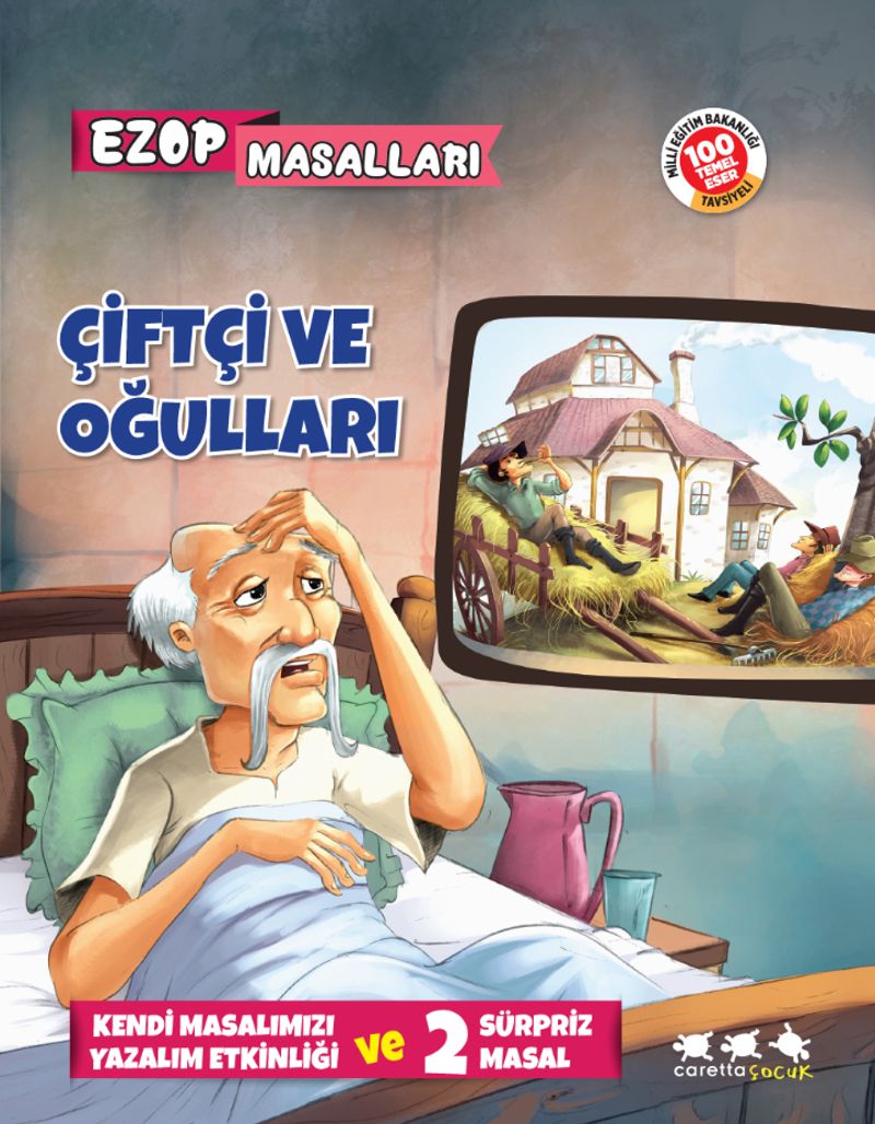 Çiftçi ve Oğulları’nın hikâyesinde, oğullarının tembelliğinden yakınan yaşlı çiftçi, onlara tarlada gizli bir hazine sandığı olduğunu söylüyor. Gece gündüz çalışarak hazineyi arayan çocukları büyük bir sürpriz bekliyor. Kitapta 2 sürpriz Ezop masalı daha yer alıyor. Çocuklar once masalları okuyor, ardından ‘Kendi Masalımızı Yazalım Etkinliği’ ile hayal gücünü kullanarak yepyeni hayvan öyküleri yazıyor.