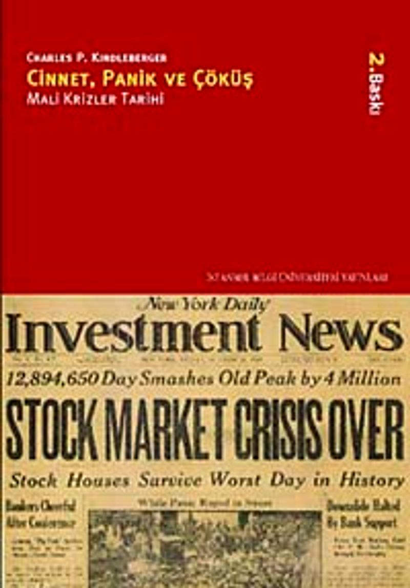 Dünyanın öndegelen iktisatçıları arasında sayılan Charles P. Kindleberger’in konusunun klasik eserleri arasına girmiş olan Cinnet, Panik ve Çöküş adlı eseri ilk kez 1978’de yayınlandı. Yazar, “kökü kurumayan döngüler” diye tanımladığı mali krizleri açıklarken; öncelikle bu konuda genel bir tanımlamaya gitmenin zor olduğunu, ancak spekülasyona yol açan koşullarla birlikte parasal boyutlarda kredinin genişlemesi ve mali sıkıntılarla başlayıp, panik ve ardından çöküşle birlikte tamamlanan kriz modelinin analizlerle çıkarsamalara arkaplan sağladığına dikkat çekiyor.