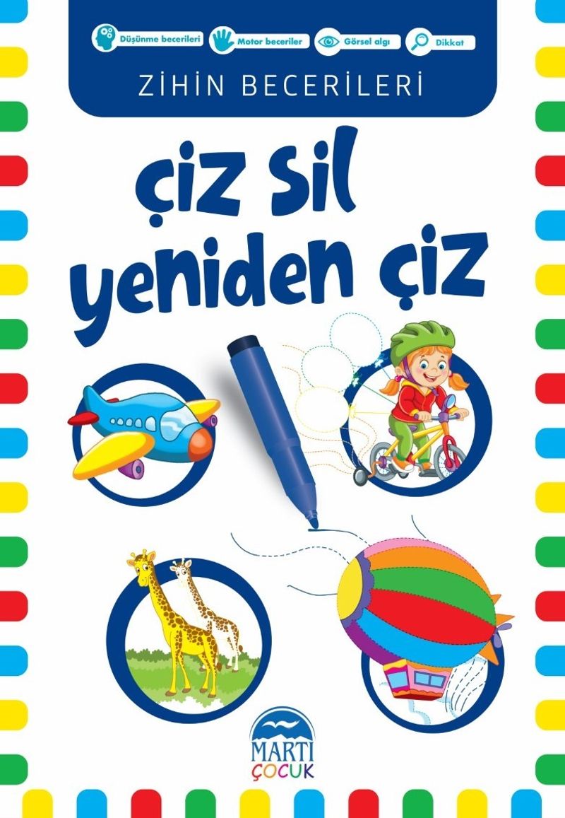 Çocuklar ayrıca her sayfada yer alan yönergeleri yerine getirerek dikkat ve psikomotor becerilerini geliştirecek, eşleştirme, ilişki kurma, tahmin etme, farklı olanı bulma gibi temel kavramları öğrenecek, kas ve göz koordinasyonlarını güçlendirecekler.
