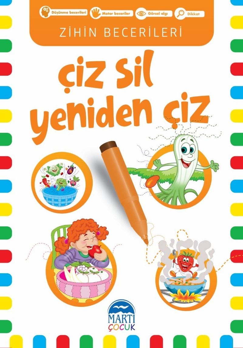 Çocuklar ayrıca her sayfada yer alan yönergeleri yerine getirerek dikkat ve psikomotor becerilerini geliştirecek, eşleştirme, ilişki kurma, tahmin etme, farklı olanı bulma gibi temel kavramları öğrenecek, kas ve göz koordinasyonlarını güçlendirecekler.