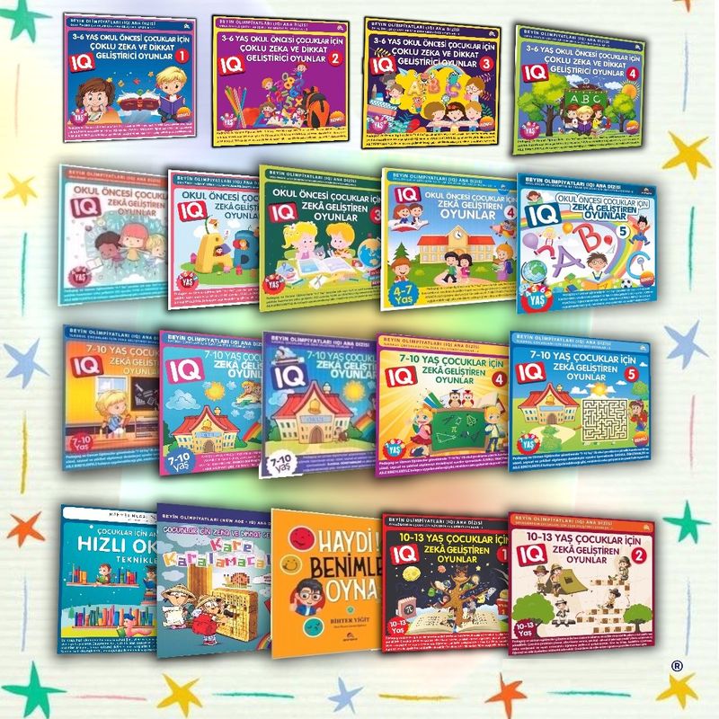 Çocukların sayı, harf, şekil kavramını öğrenirken IQ zekasını geliştirecek ve pozitif katkı sağlayacaktır. Oyunlar çocukların beynini daha aktif hale getirerek mantıklı akıl yürütme becerilerini de keskinleştirecektir. Kitaplar 3 yaşından başlayarak anaokulu ve ilkokuldan başlayarak ortaokul yıllarını da kapsayarak kapsamlı şekilde geniş yaş grubu için hazırlanmış ve sınıf etkinliklerine destek verecek şekilde zeka oyunlarına yer verilmiştir.