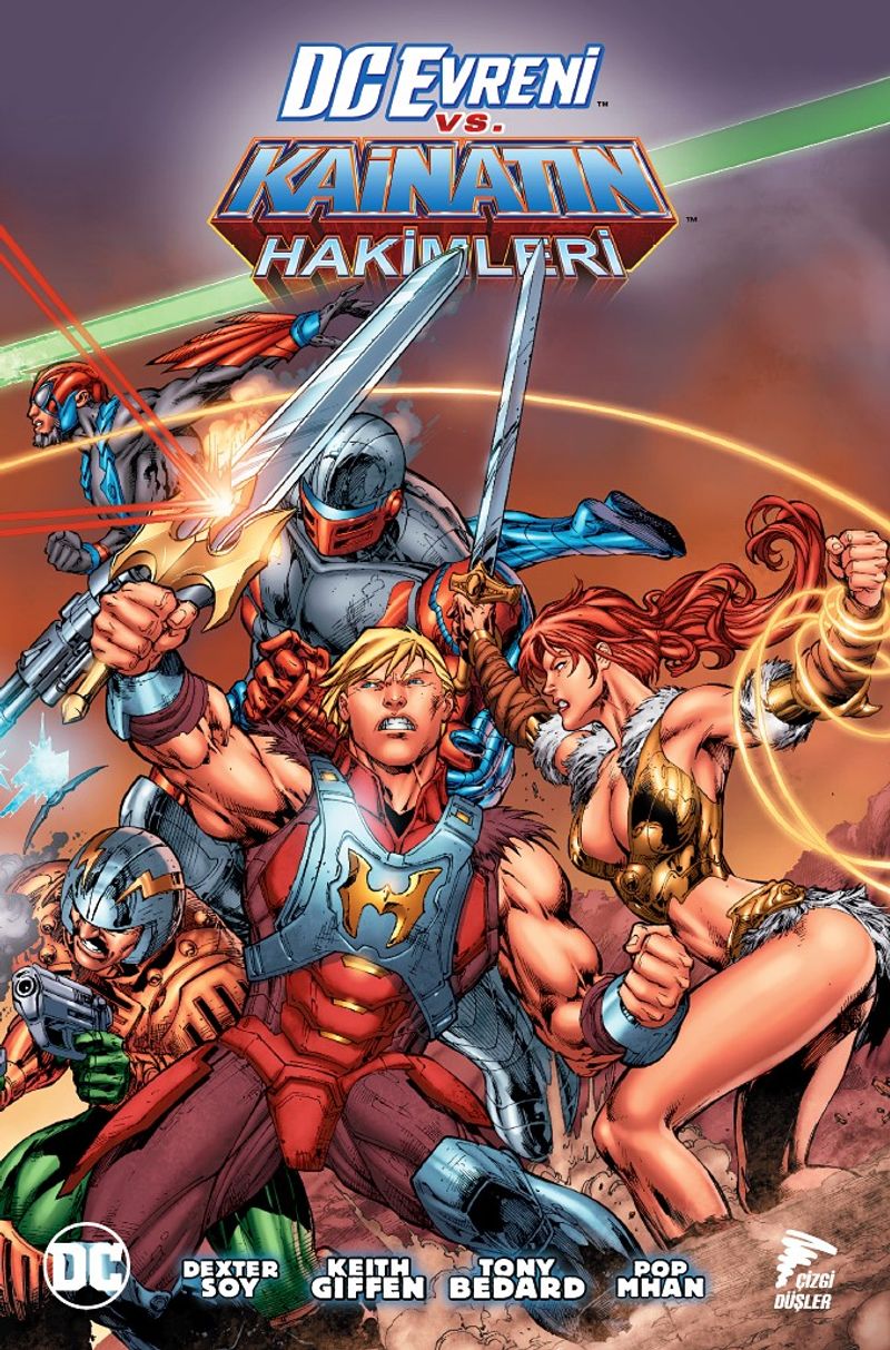 Eternia evreni karanlığa hapsolmuş, şeytani Hordlar savunmalarını alt etmiş halde. Önünde durulamayan bir gücün sahibi, tanrısal Hordak tartışılmaz üstünlüğüyle hüküm sürüyor. Hordak ile mutlak hükümdarlığı arasında duran yalnızca iki canlı var. Müttefikleri, General, Teela ve Roboto ile birlikte zorlu bir isyana öncülük eden, Eternia’nın ıssızlığındaki Gölgeler Şatosu’nun muhafızı He-Man. Tabii bir de, gerçeklik sınırlarının ötesinde, bir zamanlar Hordak’ın müttefiki olan ve Dünya’daki yeni üssünde intikam planları kuran uğursuz büyücü İskeletor. Yakında, ebedi savaşları, kendi dünyalarından bizimkine sıçrayacak. Fakat bizim dünyamızın da kahramanları var; Superman. Batman. Wonder Woman. Green Lantern. Hatta asi büyücü John Constantine. Bu kahramanlar ve daha pek çoğu önceden hiç görmedikleri bir çatışmaya sürüklenmek üzere. Belki en güçlünün yok olacağı ve en zayıfın en ölümcül düşman olabileceğinin gözler önüne serileceği bir savaş bu.