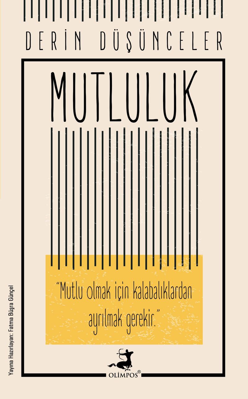 Derin Düşünceler, sevinçlerimizi, acılarımızı, en büyük korkularımızı; antik dönemlerden modern dönemlere kadar yaşamış yetenekli zihinlerin rehberliğinde gözden geçirmeyi sağlıyor.  Serinin Mutluluk kitabı, insanın yaşamı boyunca sahibi olmaya çalıştığı bu duygu üzerine Aristoteles, İbn-i Sina, Alfred Adler, Francis Bacon ve daha pek çoklarının derin düşüncelerinde bir gezinti sunuyor.