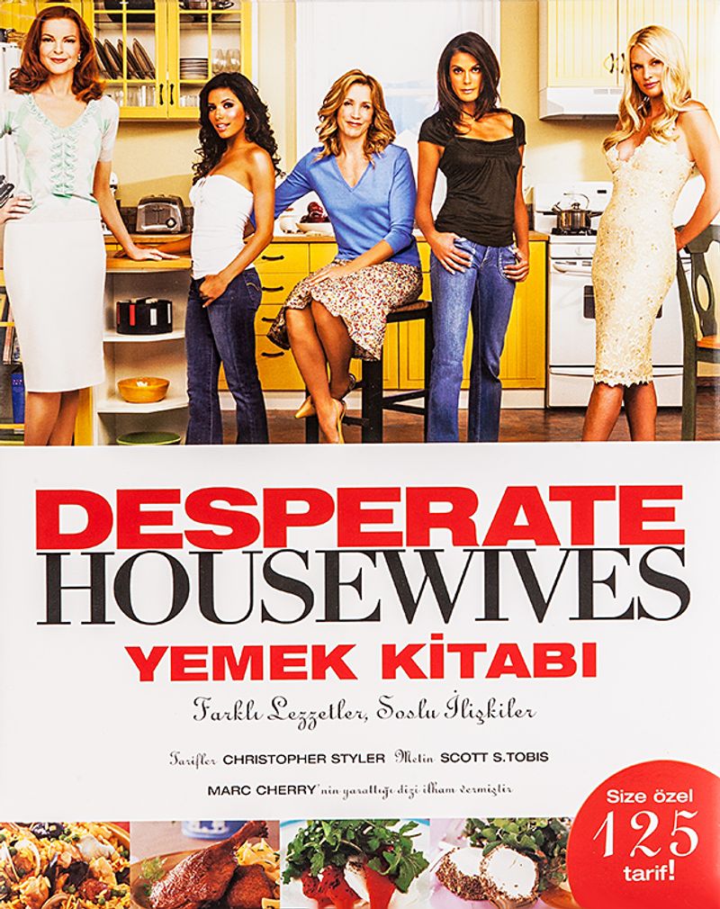 Pratikte evkadını olmasa da Edie ve diğer komşuların da tariflerinin ve mutfak sırlarının bulunduğu kitapta, yemekler evkadınlarının kişiliklerine göre sınıflandırılıyor. Hazırlanması emek ve zaman isteyen tarifler Bree’nin bölümünde yer alırken, sakarlığı ve mutfaktaki beceriksizliği ile tanıdığımız Susan ise yapılması en kolay yemekleri sunuyor. Lynette gibi kocanız dahil beş çocuğunuz ve de yetişmeniz gereken bir işiniz varsa, onun bölümündeki hazırlanması hızlı ve sağlıklı yemekler hayatınızı kolaylaştırıyor. Gabrielle’e gelince... Eski bir model ve formuna dikkat etmeli, ama hayattaki en ihtişamlı şeylerden zevk aldığı için onun bölümünde daha çok Meksika yemeklerinin yer aldığı, ünlü şeflerin tariflerini aratmayan sağlıklı ama leziz yiyecekler bulabilirsiniz. Edie ise erkekleri baştan çıkarmak için kullandığı iştah kabartıcı tarifleriyle sizleri günaha davet ediyor adeta.