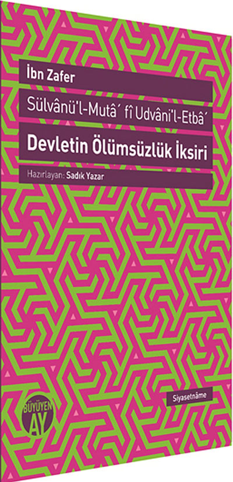 Büyüyenay Kitaplığının sekizinci siyasetnâme eseri olarak okurla buluşan Devletin Ölümsüzlük İksiri, siyasetnâme klasiklerinden olan önemli bir eser. Bu eserdeki her düşünce ve birer arketip olan her bir hikâye, yüzyılların tecrübelerinden süzüle süzüle ve adeta fazlalıklarından arına arına birer öz, usare halinde hayat pratiğini hikmetle ışıklandırmakta ve aydınlatmaktadır.
