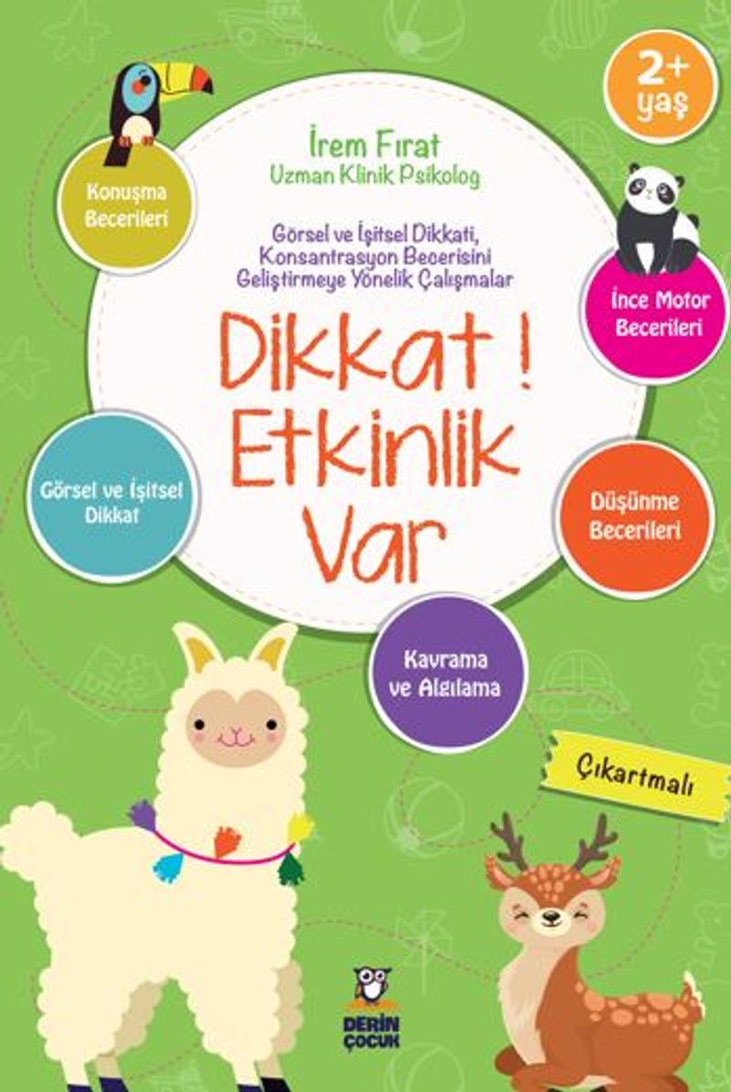 Dikkat! Etkinlik Var kitabı hem işitsel hem de görsel beceri alanlarına yoğunlaşarak dikkat ve konsantrasyon becerilerini güçlendirmeyi hedefleyen bir çalışma kitabıdır. Okul öncesi her yaş için ayrı hazırlanmıştır. İki beceri alanına birden değinmesi ile benzeri eğitim kitaplarından ayrılır.