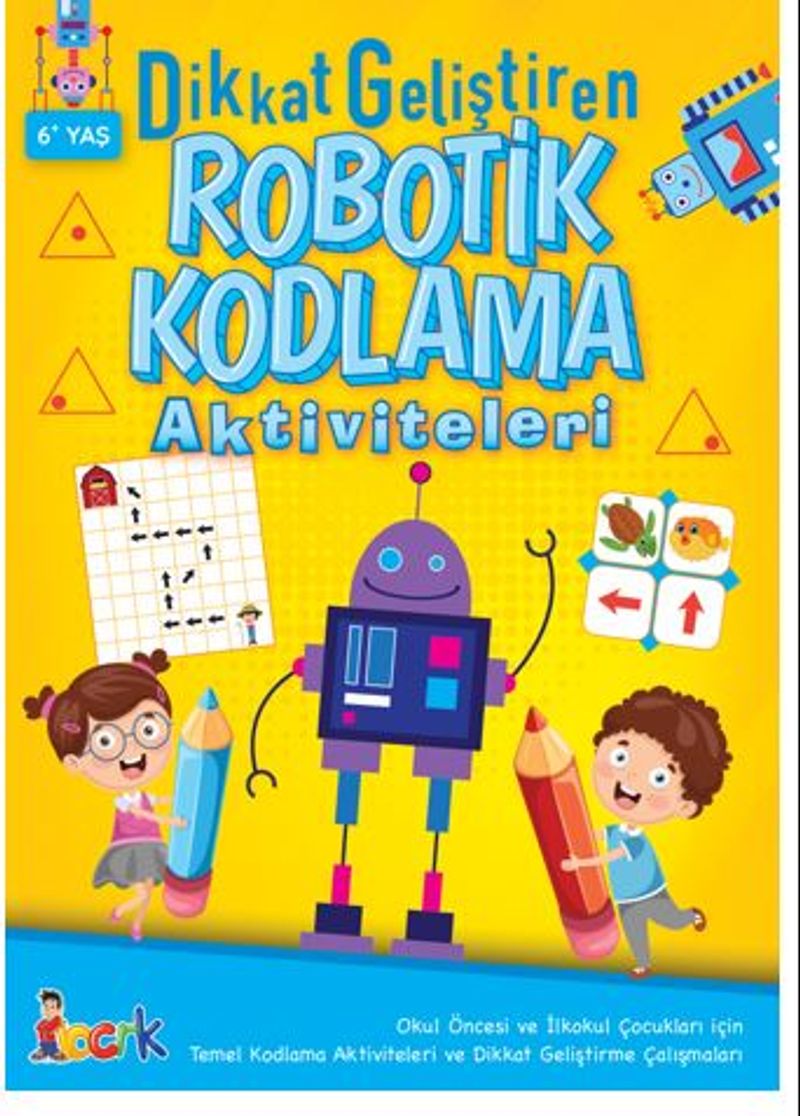 Başarılı bir okul hayatının yolu sağlam temeller üzerine kurulmuş çocukluk döneminden geçer. Çocuklarla bağ kurmanın ve güzel vakit geçirmenin en kolay yolu kitaplardır. Aktivite kitapları, sağlıklı okul dönemi için ilk adımlardan biridir. “Dikkat Geliştiren Robotik Kodlama Aktiviteleri” kitabıyla çocuklarımızın dikkat yetenekleri gelişecek, hataları azalacak ve karşılarına çıkan problemleri daha rahat çözebilecekler. Odaklanma ve dikkat geliştirme, yönergeleri anlayıp uygulama  becerisi kazanma, el-göz koordinasyonunu güçlendirme, motor becerileri geliştirme gibi konularda en büyük yardımcınız olacak bu kitap ile çocuklar çok eğlenecek, eğlenirken öğrenecekler.