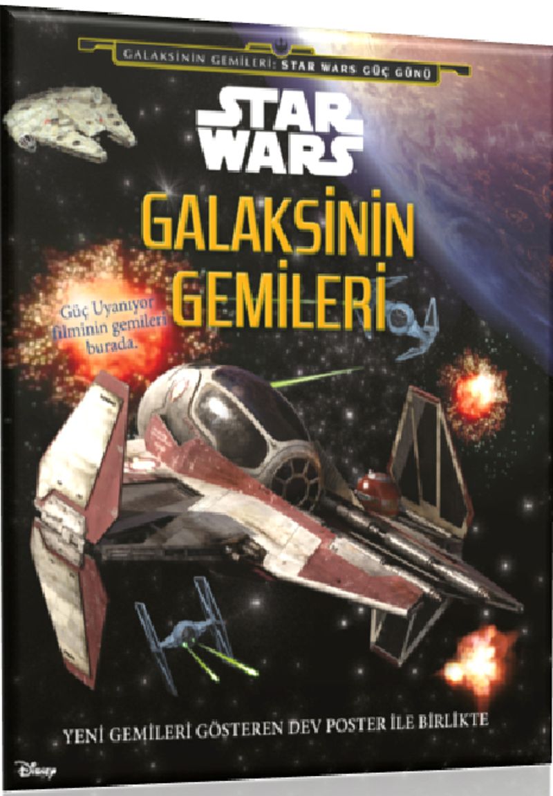 Kitapta yer alan 19 gemiye ek olarak kitabın arkasındaki dev posterdeki her bir paneli aç ve açılan her sayfayla savaşta hızı ve manevra kabiliyetiyle nam salmış X-Wing Savaş Gemisi, son derece büyük olduğundan imparatorluk filosunun en yavaş gemilerinden TIE Bombacısı, Darth Wader’le imparatoru taşıyan İmparator Mekiği gibi Güç Uyanıyor’daki 6 yeni geminin ince ayrıntılı çizimlerinin keyfini çıkarabilirsiniz.
