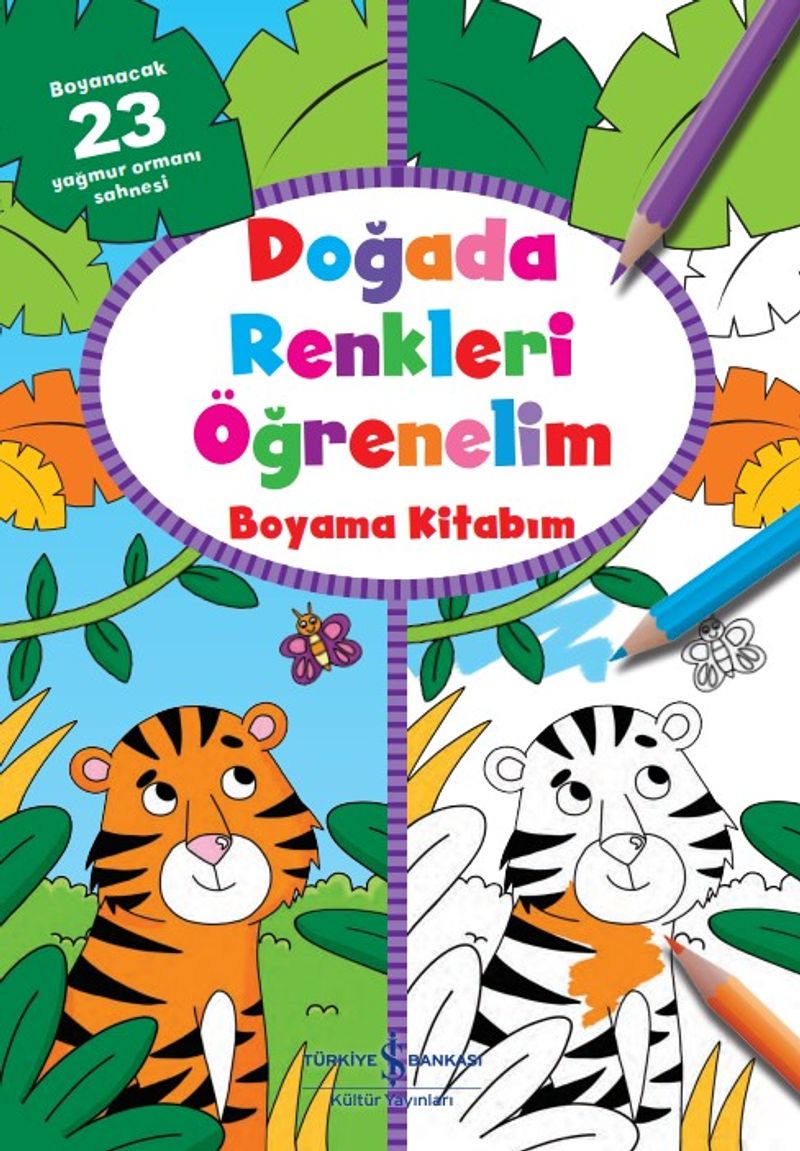 Bu harika boyama kitabının ilk 18 sayfasında, aynı resmin boyanmış ve boyanmamış hali yer almaktadır. Bu şekilde çocuğunuz resimleri hangi renklere boyayabileceğini, renkleri nasıl kullanabileceğini öğrenir. Kitabın devamında yer alan resimlerde de hangi renkleri kullanacağına kendi karar verebilir. Çocuğunuz birbirinden eğlenceli yağmur ormanı sahnelerini boyarken renkleri öğrenmenin yanı sıra el göz koordinasyonunu da geliştirecektir.