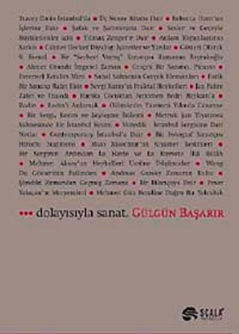 ...dolayısıyla sanat ressam Gülgün Başarır’ın beş yıl boyunca yayınlanmış yazılarından oluşuyor. Başarır bu kitabıyla, ilgiye değer bulduğu sanatçıların eserlerinden yola çıkarak disiplinler arası bir okuma gerçekleştiriyor. Kitabın sunum yazısında da belirttiği gibi sanat eleştirisini sanat üstüne anlam üretmek, bir üst dil oluşturmak olarak ifade ediyor.