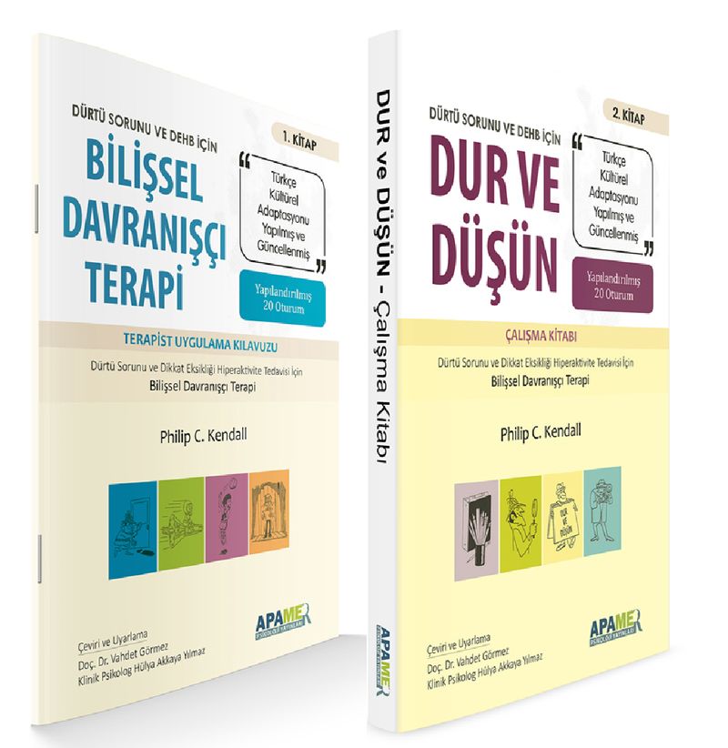 Terapist uygulama kılavuzu ve çalışma kitabından oluşan bu setin ilk kitabı “Dürtü Sorunu ve DEHB için Bilişsel Davranışçı Terapi” başlığıyla, ikinci kitabı ise “Dur ve Düşün” başlığıyla yayına hazırlandı.