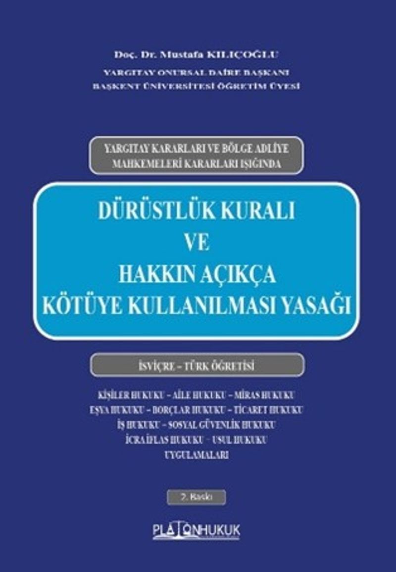 Kitabımın ilk baskısı, kısa zamanda bitmesine rağmen yeniden ele almayı düşünmemiştim. Ancak “Dürüstlük Kuralı ve Hakkın Açıkça Kötüye Kullanma Yasağını” özel hukuk alanının içine gizli ya da açık olarak yerleştirilmesinin, normatif alanda incelenmesini düşündükten sonra yeni basıya cesaret ettim. TMK m. 2 temel hüküm olarak yer alsa da TMK m. 120, 363; TBK m. 9, 25, 32, 34, 57, 73, 138, 175, 213, 216, 236, 278, 398, 399, 417, 435, 480, 523, 540, 640, 641 ; TTK m. 52, 54, 55, 199, 200, 202, 208, 227, 369, 393, 398, 402, 403, 404, 420, 437, 445, 457, 515, 516, 626, 1083, 1311; HMK m. 29, 124, 327; İş K. m. 7; Tük. K. m. 5, 6’da bazı farklılıklarla uygulama yeri bulmaktadır. Söz konusu kanun hükümlerinde “dürüstlüğe aykırılık”, “dürüstlük”, “dürüstlük kuralına aykırılık”, “doğru ve dürüst”, dürüstlük kuralı”, “gerçeklik ve dürüstlük” gibi kavramlar kullanılmıştır. Bazen de edim yükümlülüğünde bu kavramlara rastlanılır. Bir anlamda “dürüstlük” çekirdek kavramdır. Bu kavramın, hak - ödev – yükümlülük kapsamında kullanılsa da bu durum, özündeki erdemliliği somut olay adaletini gerçekleştirme ve hakkaniyete varma yolunda bir enstrüman olduğu gerçeğini değiştirmez. Sonuç olarak bu kitapta, TMK m. 2 bağlamında, “düzeltici müdahale işlevi”, “iyi niyetle farkı”, “güven ilkesi”, “hata ile karşılaştırılması”, “çelişkili davranma yasağı”, “şekil eksikliğine dayanmak” gibi kavramlara yer verildikten sonra; özel hukuk alanındaki çok sayıda normatif hükme yer verilerek bir farkındalık yaratılmaya çalışılmıştır. Teorik bölümde sıkça konuyla ilgili İsviçre Federal Mahkeme kararlarına yer verilmiştir. Normların işlendiği Yargıtay kararları soyutu somutta aramada, bu yolla bilginin kalıcılığını sağlamada yararlı olacağı düşüncesindeyim.