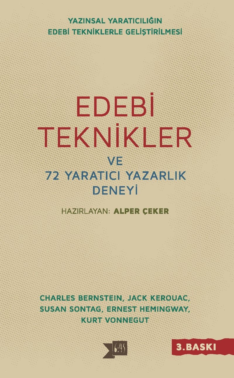 Edebi tekniklerin Türk ve Dünya edebiyatından örneklerle anlatıldığı bu kaynak itap 72 adet yaratıcı yazarlık deneyi ve kalem alıştırması önerisiyle tamamlanıyor.