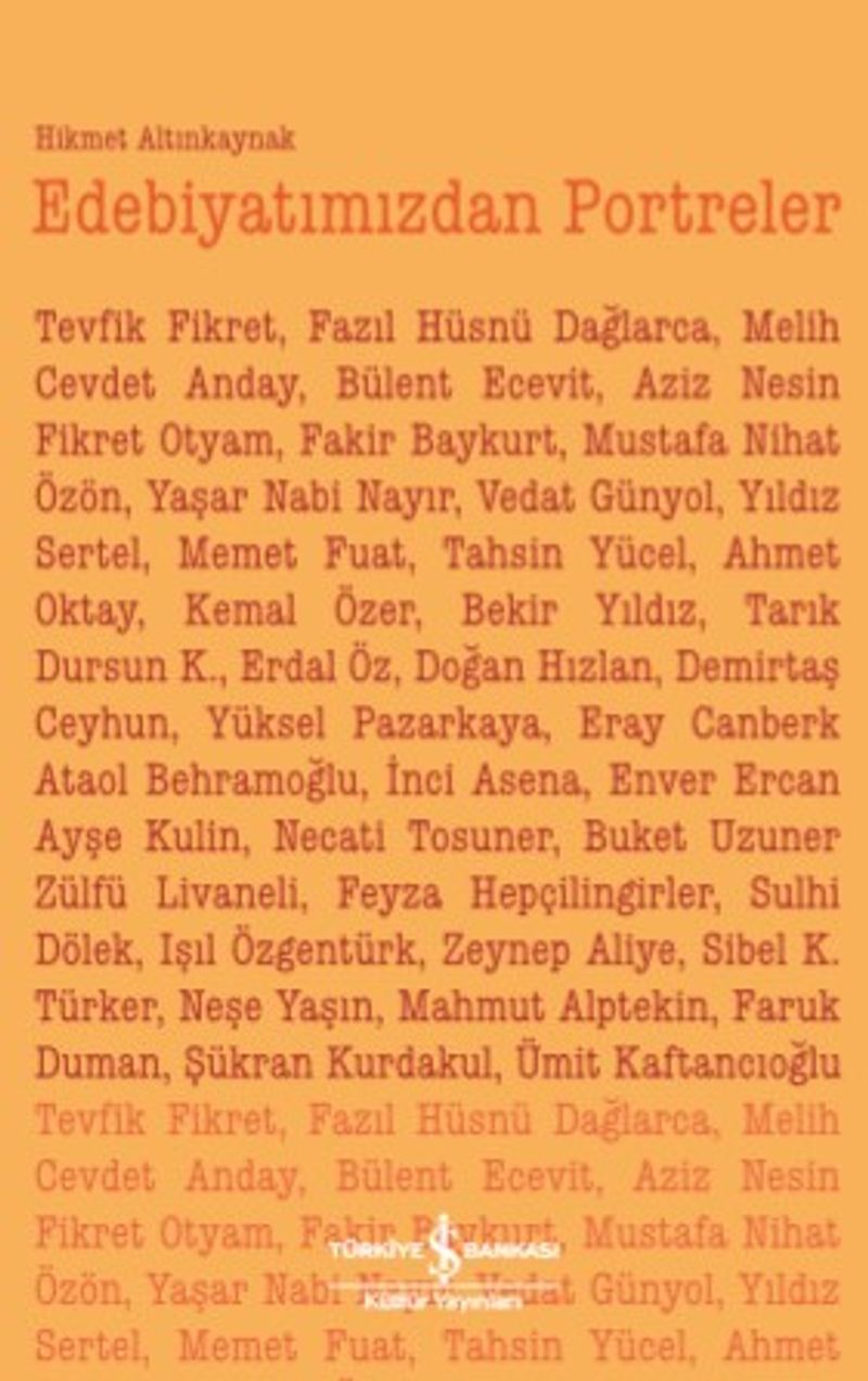 Şairler/yazarlar; öykücüler/romancılar; denemeciler/eleştirmenler başlıklarıyla hazırlanan ve üç bölümden oluşan Edebiyatımızdan Portreler kuşku yok ki bu ustaların yapıtlarının ve sanatçı kişiliklerinin değerlendirilmesine ışık tutacak.
