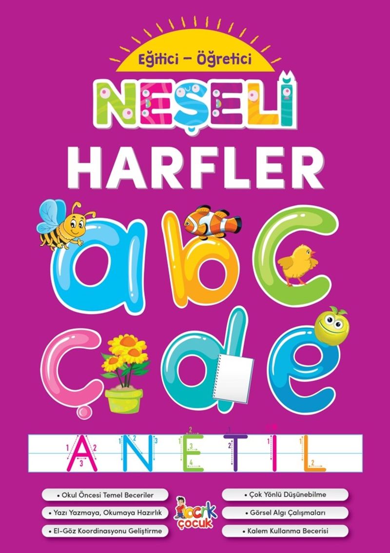 Yeni Okul Öncesi Programına uygun hazırladığımız “Eğitici-Öğretici Neşeli Harfler” kitabımızı 0-4 yaş arası çocuklarımız çok sevecek. Kalem kullanmaya yeni başlayan çocuklar; çizerek, boyayarak ve eğlenceli etkinlik sayfalarıyla hem eğlenip hem de öğrenecekler.