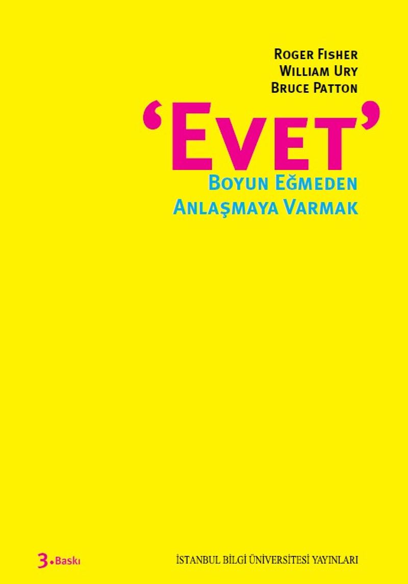 Türkiye gibi çatışmacı olduğuna inanılan bir toplumda, özel veya iş hayatımızdaki uyuşmazlıkları sinirlenmeden, karşı tarafla yanlış anlaşmaksızın ve prensipler ışığında çözebilmek ne güzel olurdu değil mi? İşte Evet, Boyun Eğmeden Anlaşmaya Varmak, bunu başarmanın yolunu gösteriyor; insanları problemden ayrı tutmayı, pozisyonlara değil menfaatlere odaklanmayı, her iki tarafı da memnun edecek seçenekleri beraber çalışarak bulmayı ve sizden daha güçlü olan, oyunu kurallara göre oynamayı reddeden veya "çirkin taktiklerden" yararlanmak isteyenlere karşı nasıl başarı ile müzakere edeceğinizi anlatıyor.