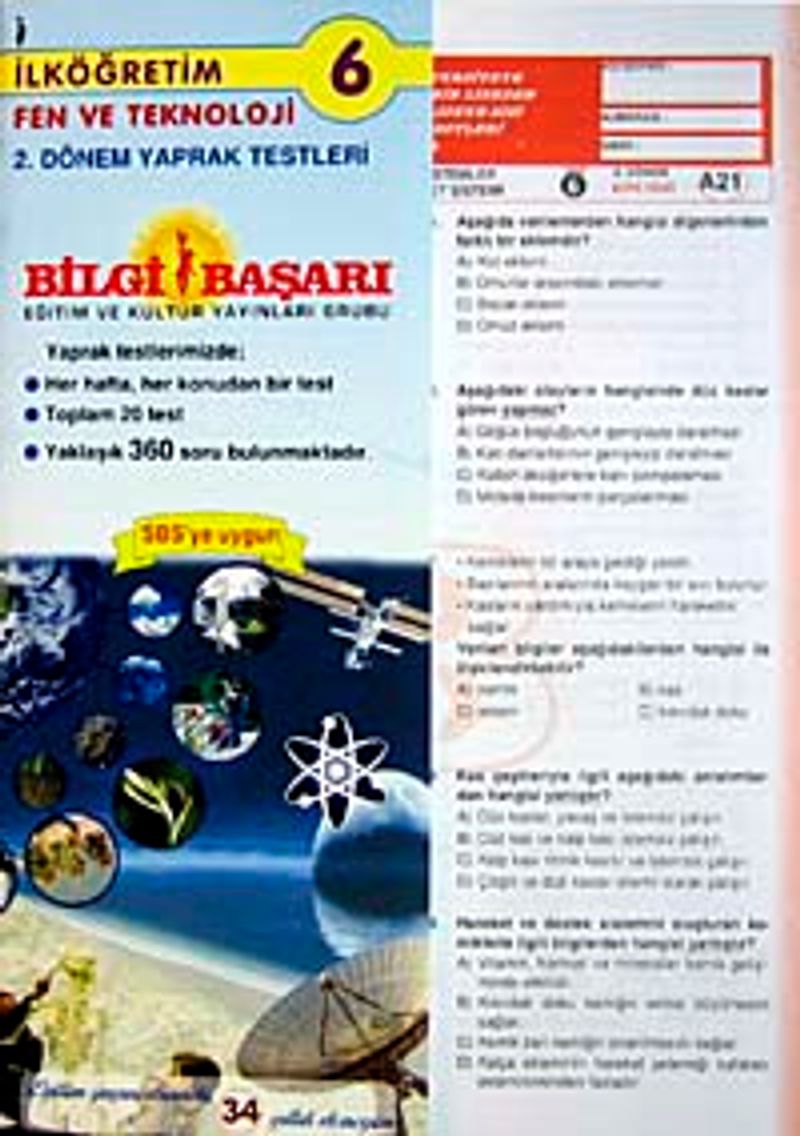 Fen ve Teknoloji 6.Sınıf Yaprak Test II.Dönem