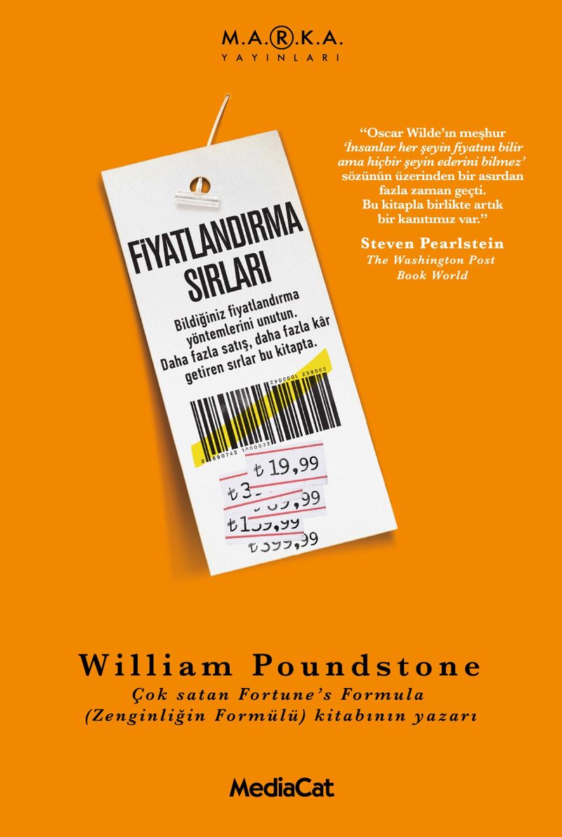 Fiyatlandırma Sırları’nda çok satan yazar William Poundstone, bir şeye atfedilen değerin arkasındaki gizli psikolojiyi açığa çıkarıyor. Deneylerde, insanlar bir malın hak ettiği fiyatı tahmin edemiyorlar ve bilinçsizce, irrasyonel bir şekilde etkileniyorlar. Yeni fiyatlandırma psikolojisi; fiyat etiketlerinin, menülerin, indirim ilanlarının, cep telefonu planlarının ve kurumsal hisse senedi alımlarının tasarımlarını da belirliyor. Gizli ikna edici unsurlar arasındaki en etkili unsur: F iyatlar.